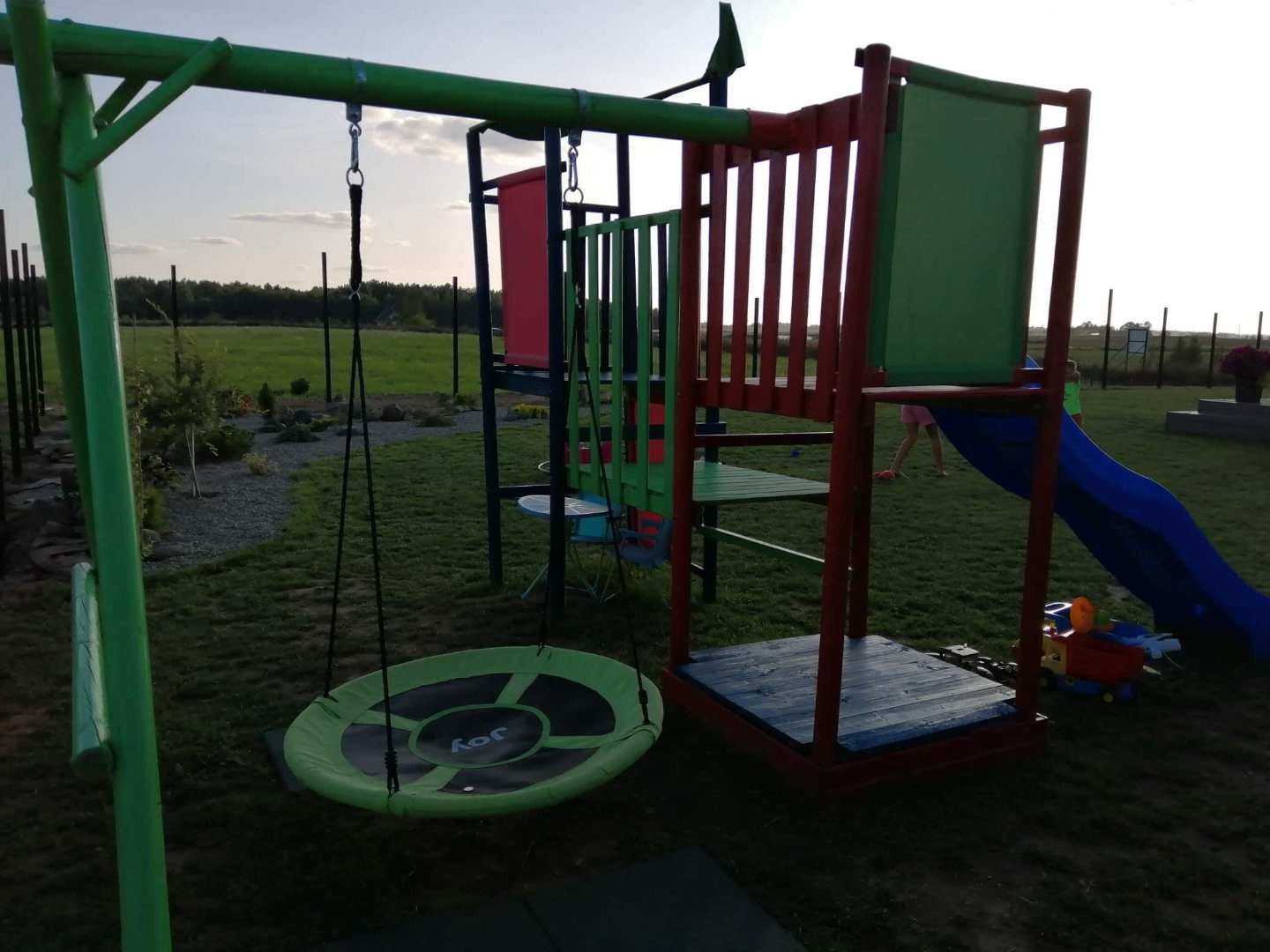 Mūsų šeima naujakuriai, pas mus dar nežaliuoja ideali veja, nebaigta statyti tvora ir pan. Ši vasara naujuose namuose mums pirmoji. Tačiau nusprendėme, kad svarbiausia vaikų juokas ir gera nuotaika, tad nusprendėme įsigyti vaikų žaidimų aikštelę, nepaisant, kad kieme dar nėra idealios tvarkos. Juk nepasakysime vaikams, kad pirma visa kita, o tada tik žaidimai. Vaikai yra didžiausias turtas ir dėl jų norisi padaryti viską. Ir dabar, kai stovi žaidimų aikštelė, vaikai joje praleidžia ištisas dienas, ir mums su vyru kiti darbai lengviau einasi, nes vaikai nebeklausinėja, ką veikti 😉 Žaidimų aikštelė tampa ir jų darželiu, ir namais, ir kavine, ir parduotuve ir dar daug daug viskuo. Ačiū, kad esate, Jūsų dėka vaikystė yra nuostabi!