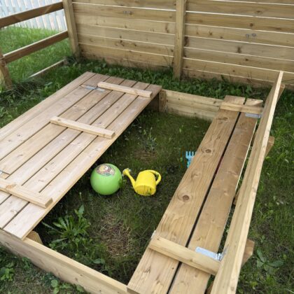 Impregnuota medinė smėliadėžė, 137 x 137 cm_ekspozicinė prekė