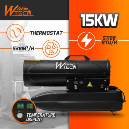 Original price was: €69.99.€49.99Current price is: €49.99.Dyzelinis šildytuvas su ratukais, Warmtech 50W,