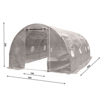 Šiltnamis su armuota plėvele, 18 m2, 3×6 m, pilkas