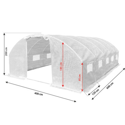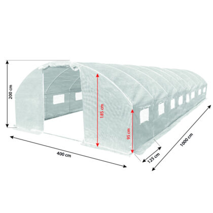 Šiltnamis su armuota plėvele, 40 m2, 4×10 m, baltas
