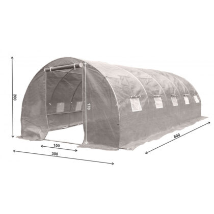 Šiltnamis su armuota plėvele, 24 m2, 8 x 3 m, baltas