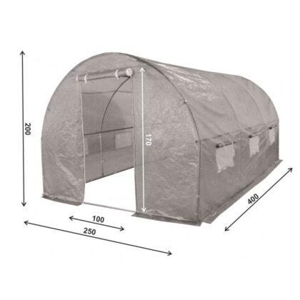 Šiltnamis su armuota plėvele, 10 m2, 2.5×4 m, pilkas