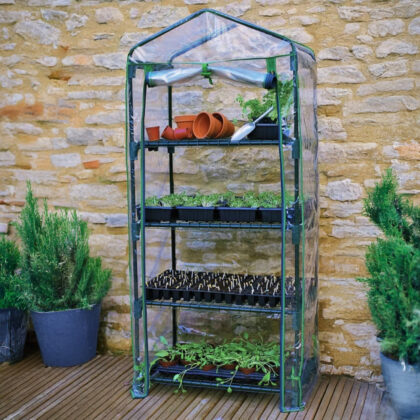 Mini šiltnamis – daigykla su lentynomis, 69x49x125 cm, žalias
