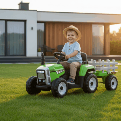 Vaikiškas elektrinis bagis su priekaba, žalias