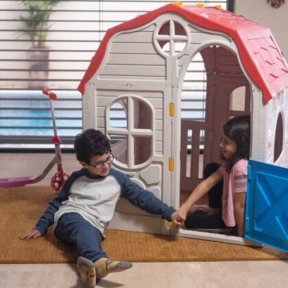 Original price was: €154.99.€109.99Current price is: €109.99.Vaikiškas plastikinis sulankstomas žaidimų namelis „Trobelė”