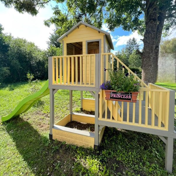 Kristina dalinasi savo šeimos medinio žaidimų namelio „Koriukas” su dvigubomis sūpynėmis projektu. Kokią nuostabią spalvą jie išsirinko, kuri tikrai prideda daugiau žavesio žaidimų nameliui.