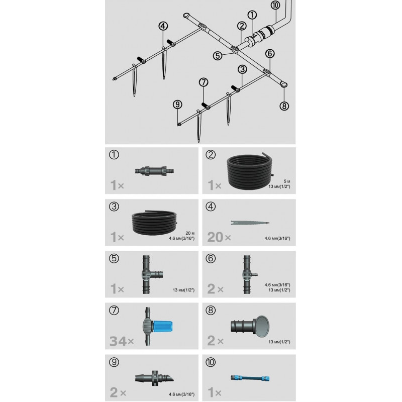 Šis 34 taškų laistymo sistemos rinkinys yra praktiškas sprendimas, skirtas efektyviam ir tiksliniam augalų laistymui šiltnamiuose, daržuose, gėlynuose ar balkonuose. Sistema leidžia tiksliai reguliuoti vandens kiekį kiekviename laistymo taške, užtikrinant optimalų drėkinimą ir taupant vandenį.