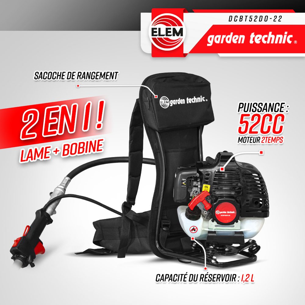 Rankinė žoliapjovė-krūmapjovė su petnešomis Elem Garden Technic 1,45 kW, 52Cc