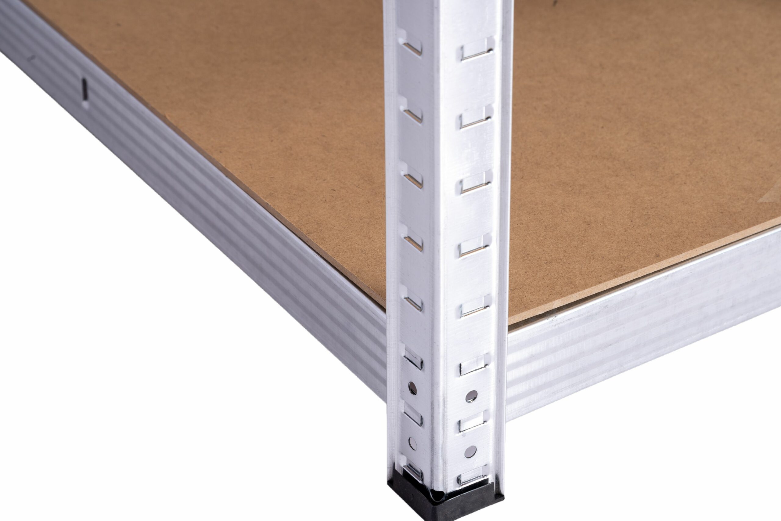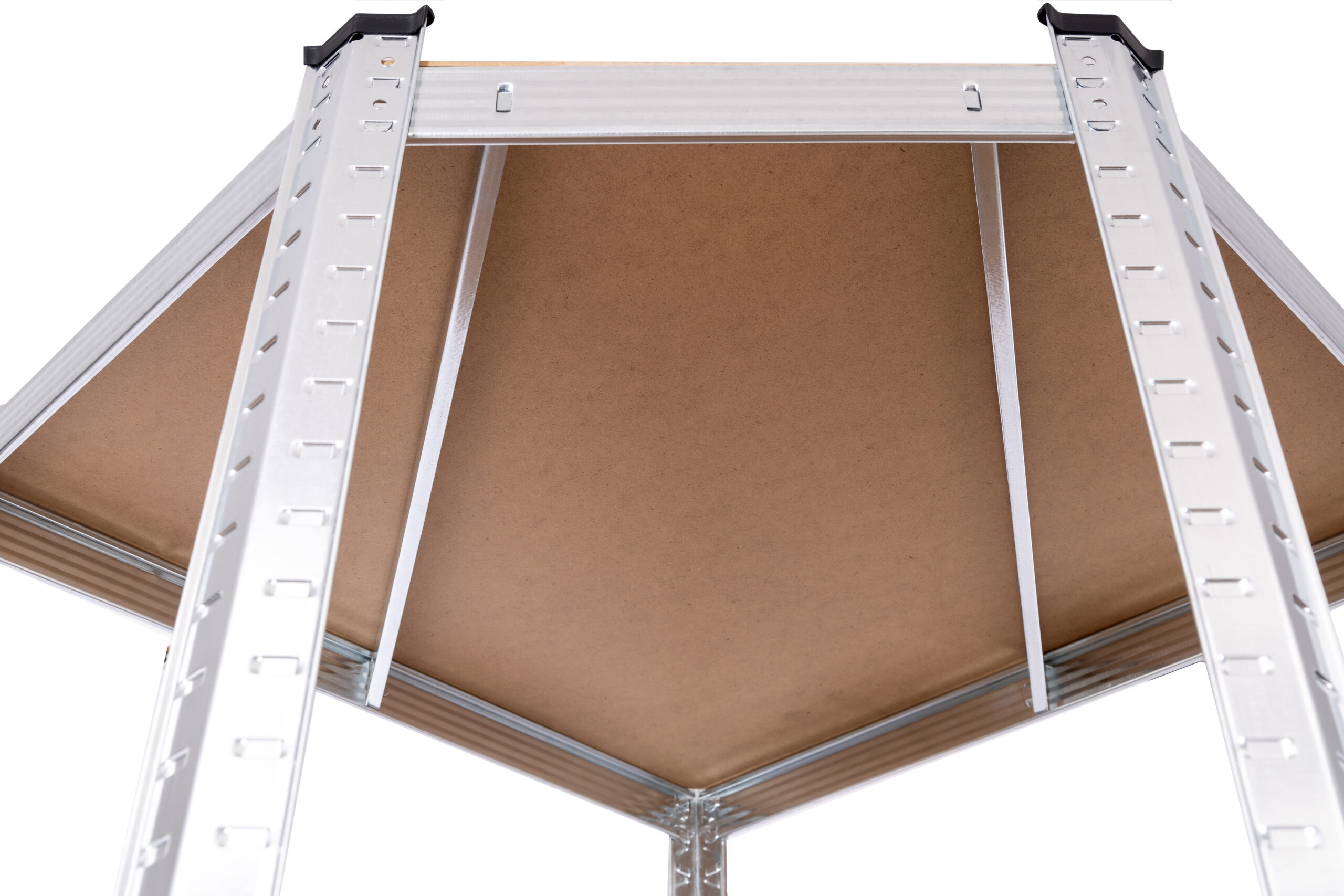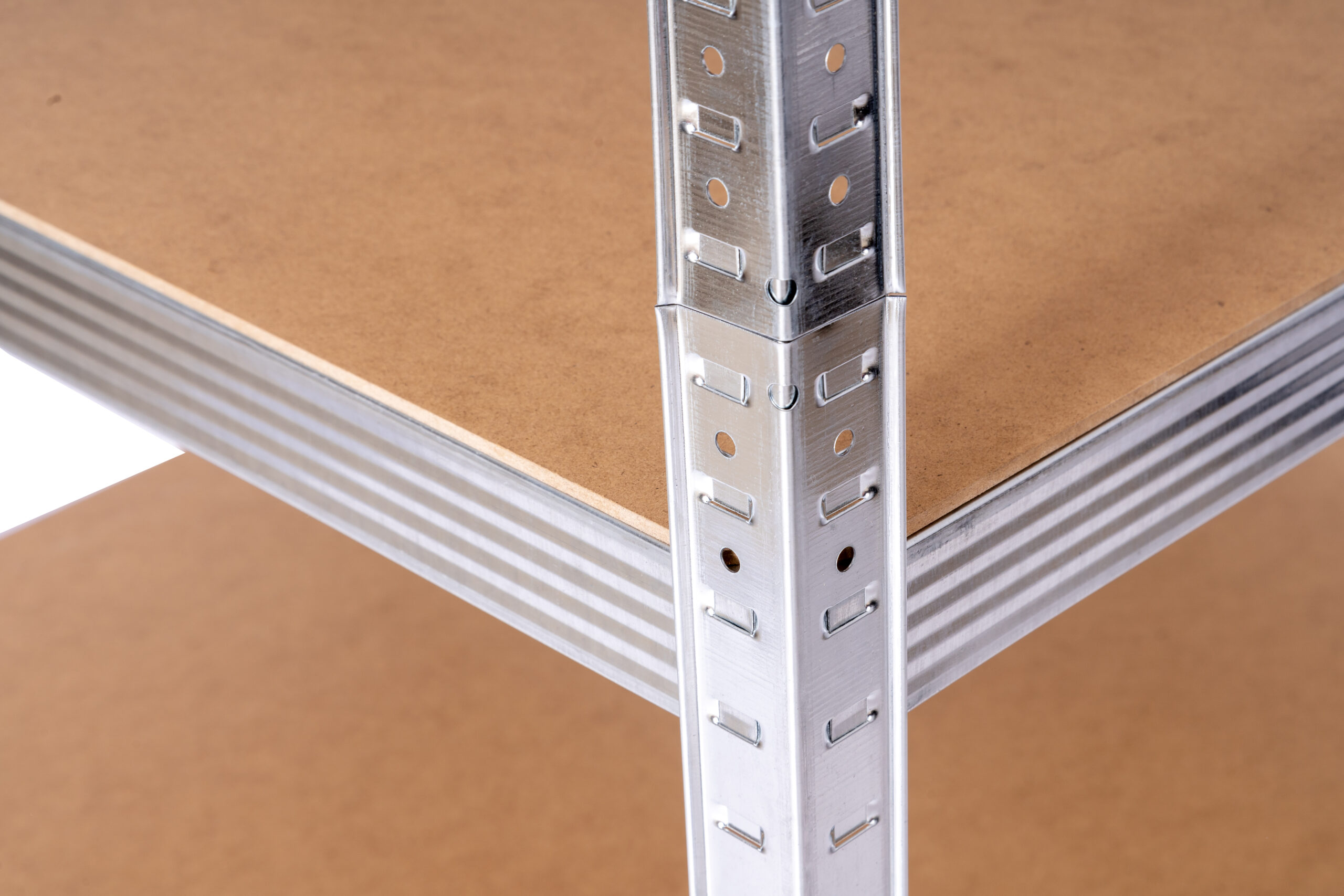 Sandėliavimo lentynos – plačiai pritaikomas bei itin patogus daiktų laikymo sprendimas. Ši aukštos kokybės kampinė metalinė sandėliavimo lentyna – praktiškas būdas rūšiuoti daiktus, padės palaikyti tvarką ir efektyviai išnaudoti turimą erdvę namuose, garažuose, sandėliukuose ar kitose patalpose. Tvirtas cinkuoto plieno rėmas ir 175 kg lentynų apkrova užtikrina, kad lentyna gali atlaikyti įvairaus svorio daiktus. Lentyna pasižymi funkcionalumu, patikimumu ir stilingu dizainu. Statant keletą sandėliavimo lentynų vieną šalia kitos, galima greitai sukurti vientisus daiktų laikymo ir sandėliavimo sprendimus, o jas surinkti yra itin paprasta ir be jokių papildomų įrankių.