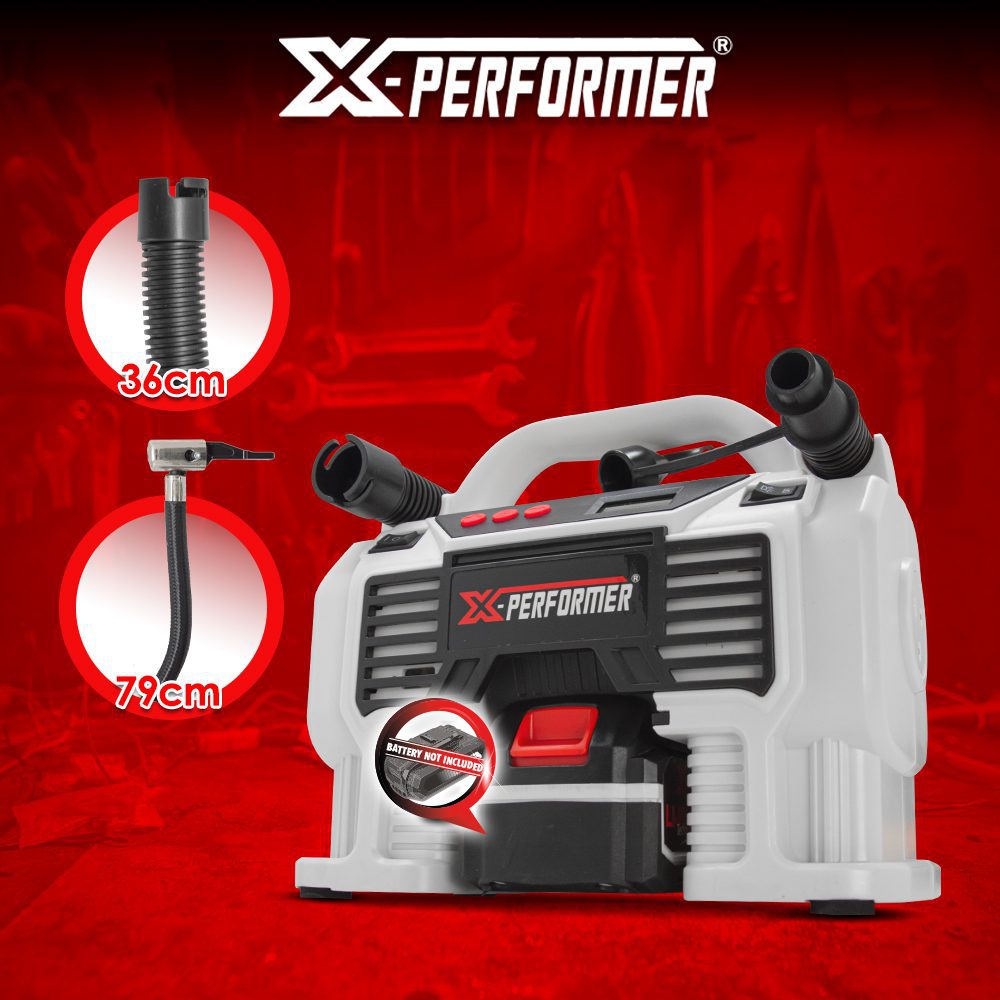 Šiuo akumuliatoriniu oro kompresoriumi XP2AIR20LI nesudėtingai galima pripūsti balionus ir dviračių ratus, pripūsti ir išpūsti oro čiužinius, pripučiamus baseinus ir kt. Skaitmeniniame ek-rane galėsite pasirinkti norimą slėgį, o kompresorius sustos, kai tik slėgis bus pasiektas.