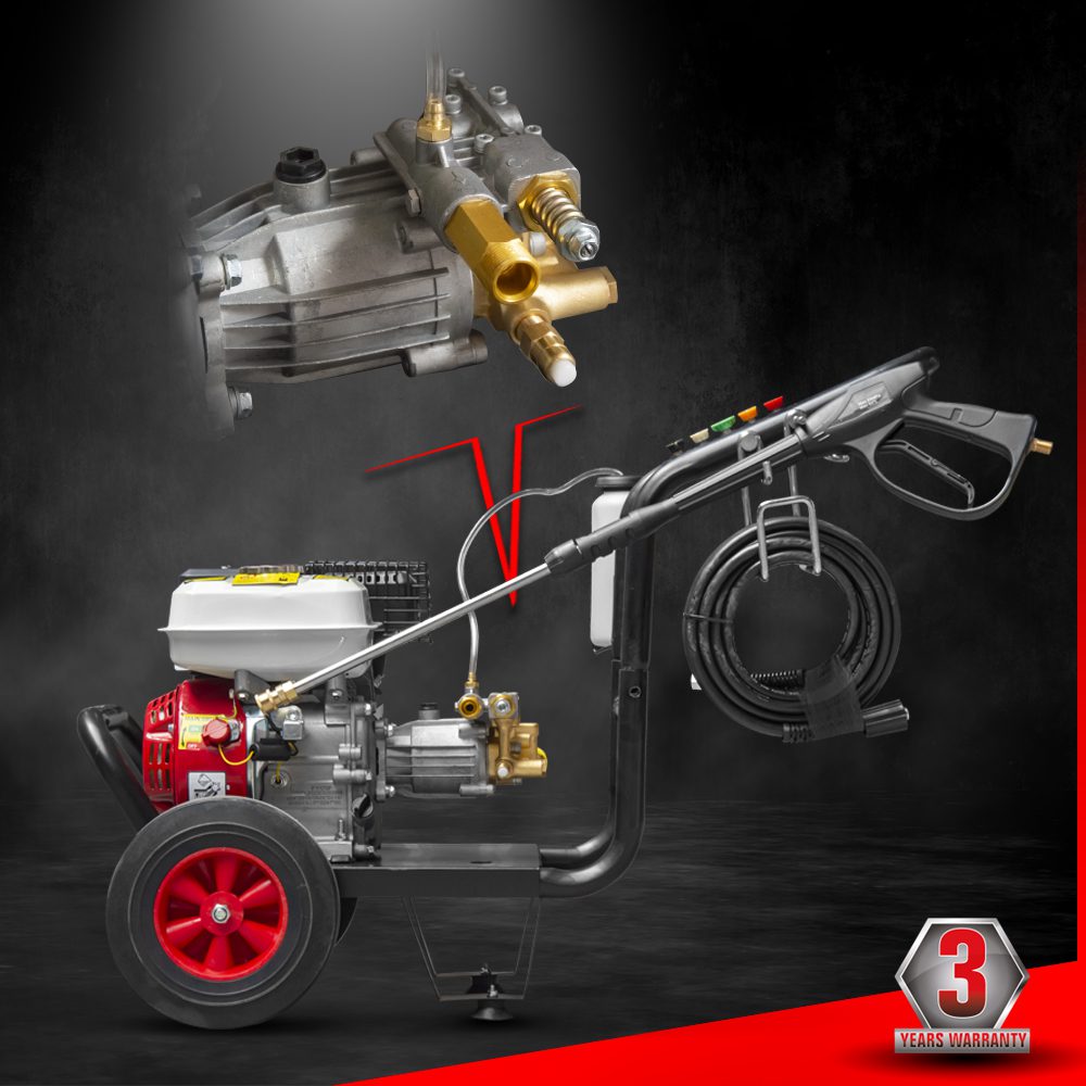 Aukšto slėgio plovykla yra puikus įrankis lengvai valyti transporto priemones, terasas, fasadus ir pan. Slėginį plovimo įrenginį lengva transportuoti, nes jis turi ratukus ir nešiojimo rankeną. Įrengtas alyvos trūkumo apsauginis įtaisas varikliui apsaugoti ir žalvarinis siurblio korpusas.
