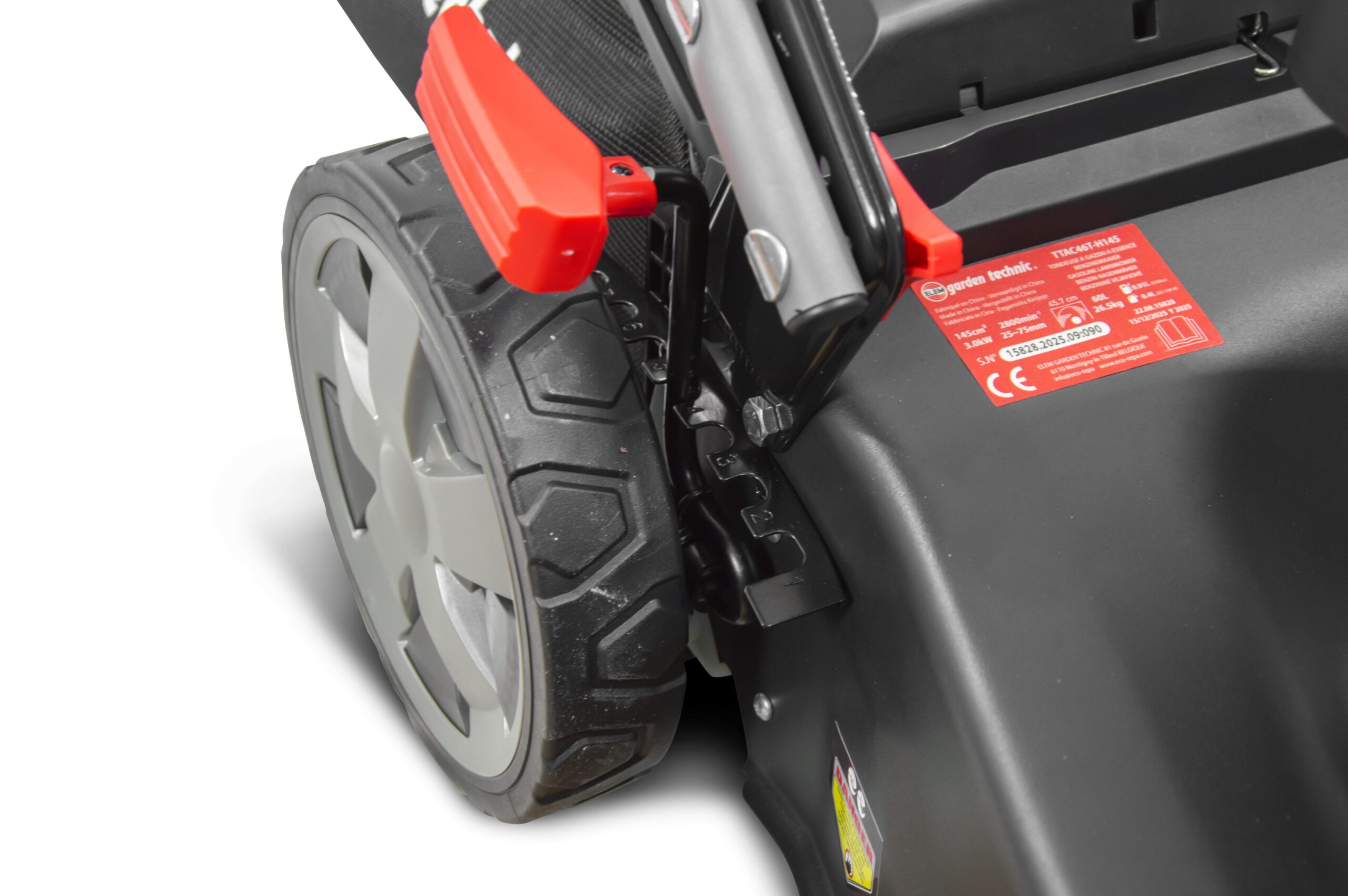 Ši vejapjovė turi 7 pjovimo aukščio pozicijų reguliavimo sistemą, kuri leidžia lengvai pasirinkti pjovimo aukštį – nuo 25 iki 75 mm. Tai suteikia galimybę prisitaikyti prie skirtingų vejos sąlygų ir pasiekti norimą pjovimo aukštį.
