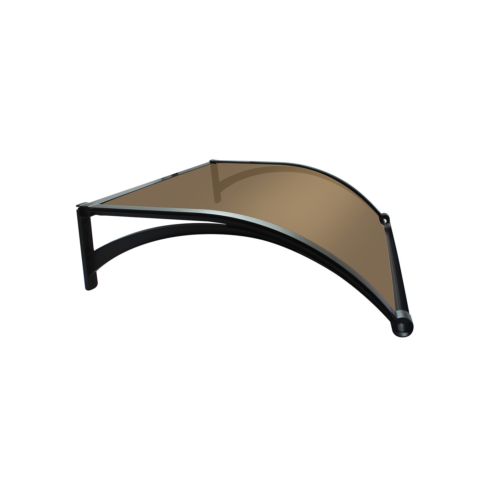 Pagamintas iš 2.7 mm rudos spalvos polikarbonato, kuris užtikrina atsparumą smūgiams, oro sąlygoms ir temperatūrų svyravimams. Šis stogelis ilgam išlaiko savo estetinį vaizdą. Juodos spalvos rėmas pagamintas iš tvirto aliuminio, ne tik suteikia konstrukcijai tvirtumo, bet ir yra atsparus drėgmei bei UV spinduliams. - Patikima UV apsauga: