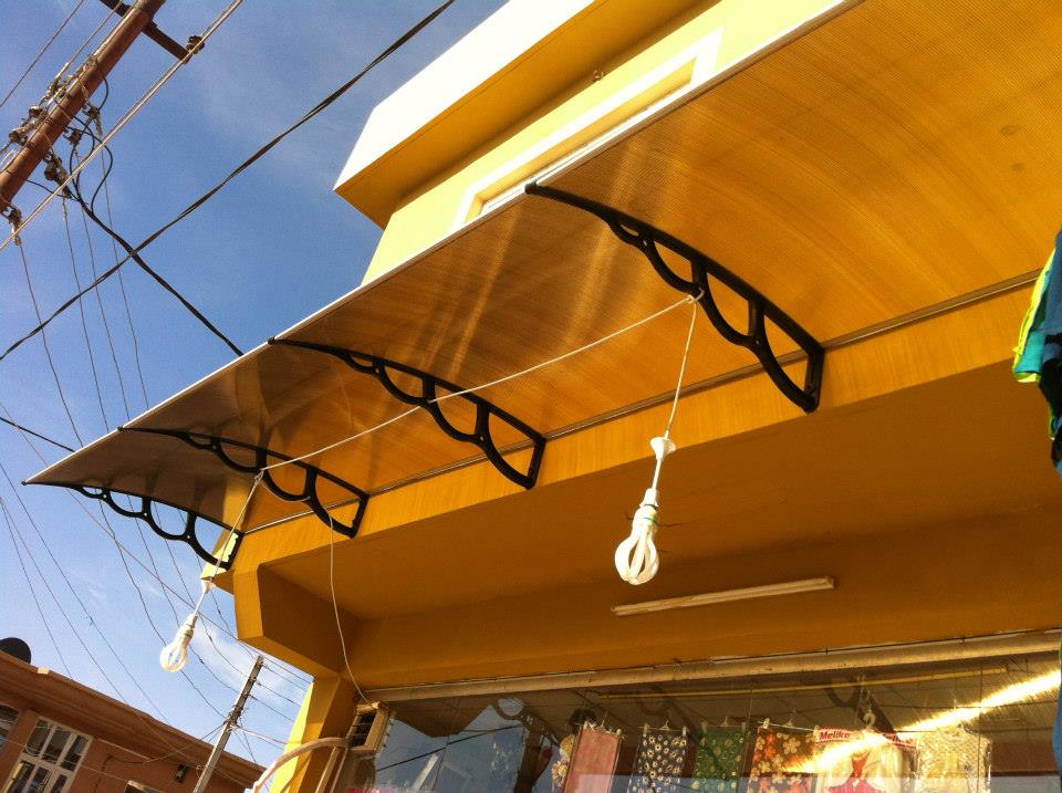Pagamintas iš 5.2 mm skaidrios spalvos polikarbonato, kuris užtikrina atsparumą smūgiams, oro sąlygoms ir temperatūrų svyravimams. Šis stogelis ilgam išlaiko savo estetinį vaizdą. Juodos spalvos plastikinis rėmas pagamintas iš tvirto plastiko, ne tik suteikia konstrukcijai tvirtumo, bet ir yra atsparus drėgmei bei UV spinduliams. - Patikima UV apsauga: