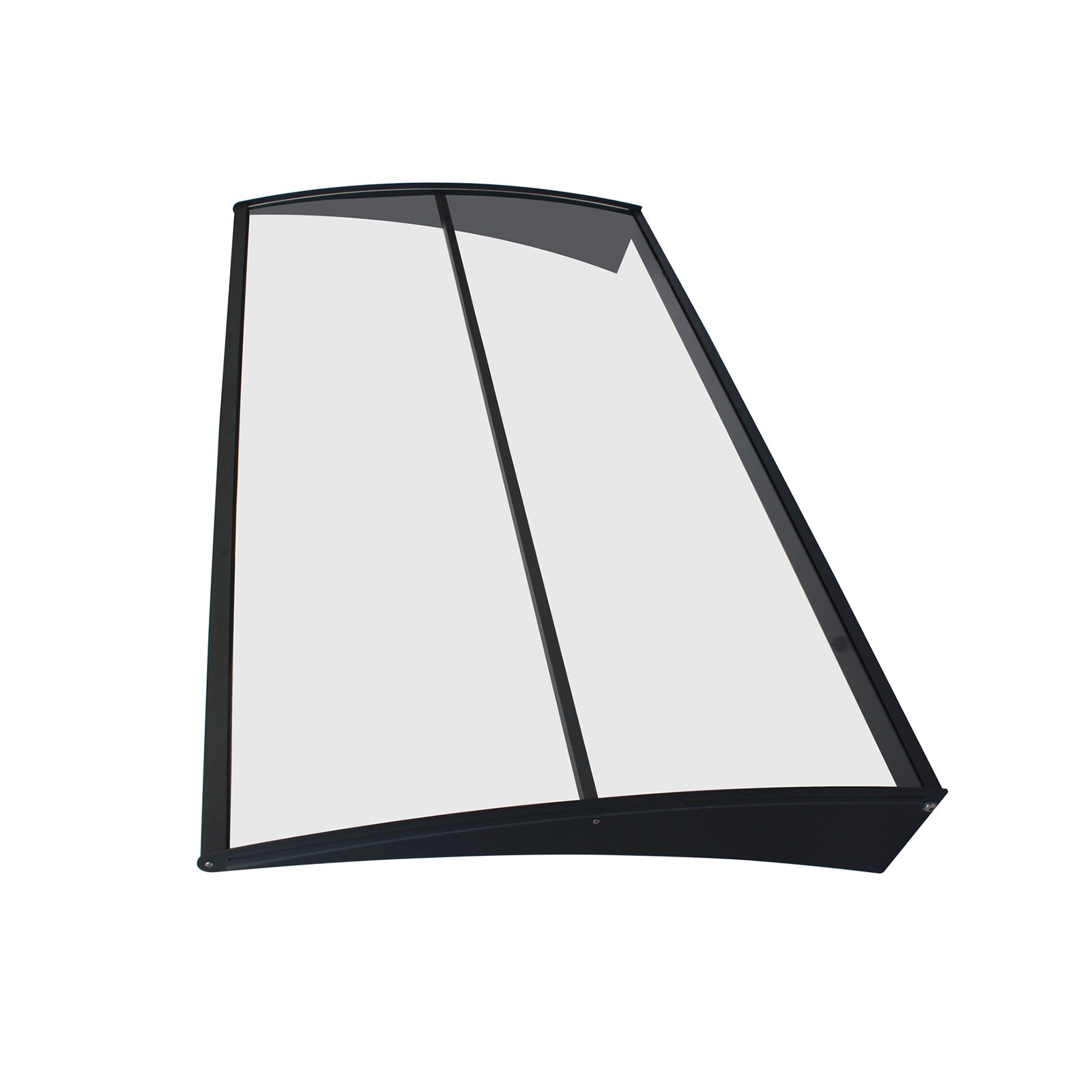 Pagamintas iš 2.7 mm skaidraus polikarbonato, kuris užtikrina atsparumą smūgiams, oro sąlygoms ir temperatūrų svyravimams. Šis stogelis ilgam išlaiko savo estetinį vaizdą. Juodos spalvos rėmas pagamintas iš tvirto aliuminio, ne tik suteikia konstrukcijai tvirtumo, bet ir yra atsparus drėgmei bei UV spinduliams. - Patikima UV apsauga: