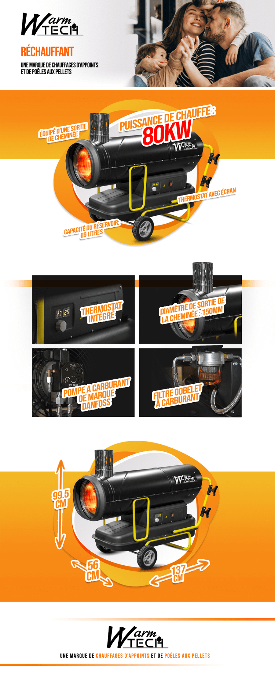 Dyzelinis šildytuvas Warm Tech, 80 kW