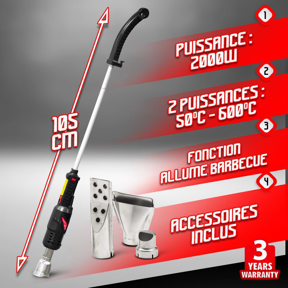 Įrenginys turi dvi temperatūros padėtis: 50 °C ir 600 °C, todėl jį lengva pritaikyti įvairiems poreikiams. Be piktžolių naikinimo, degintuvą galite naudoti ir kaip grilio uždegimo įrankį – specialus antgalis padės lengvai įžiebti anglis. Dar daugiau – nuėmus rankeną, įrenginys tampa klasikiniu karšto oro pistoletu, puikiai tinkančiu darbams, reikalaujantiems karščio.