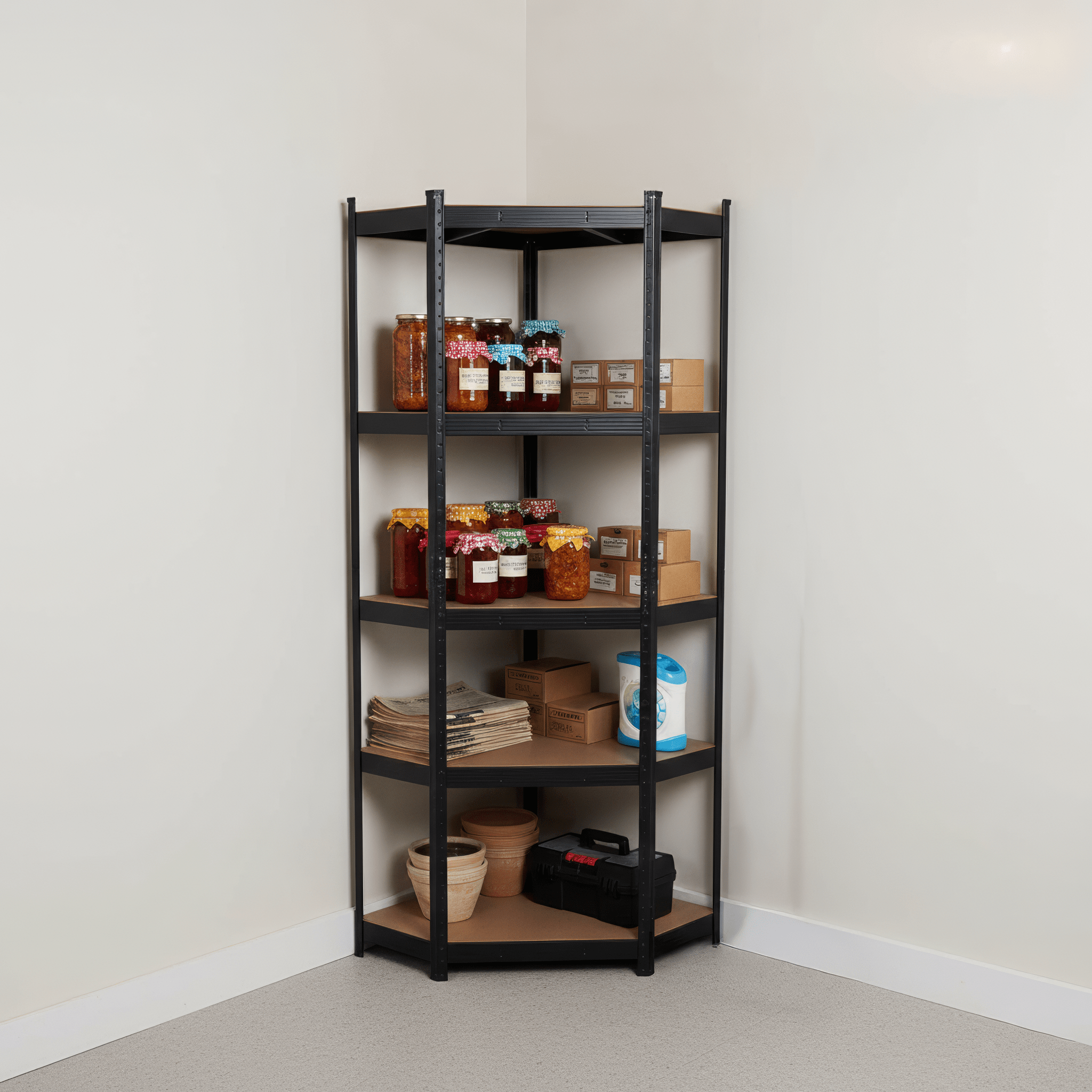 Kampinė sandėliavimo lentyna – stelažas, 180x70x70x40cm, 175kg, juoda