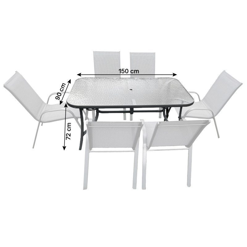 Grūdinto stiklo stalo paviršius ir tvirto audinio kėdės yra lengvai valomi – tiesiog nuvalykite drėgna šluoste, kad pašalintumėte nešvarumus ar dėmes.