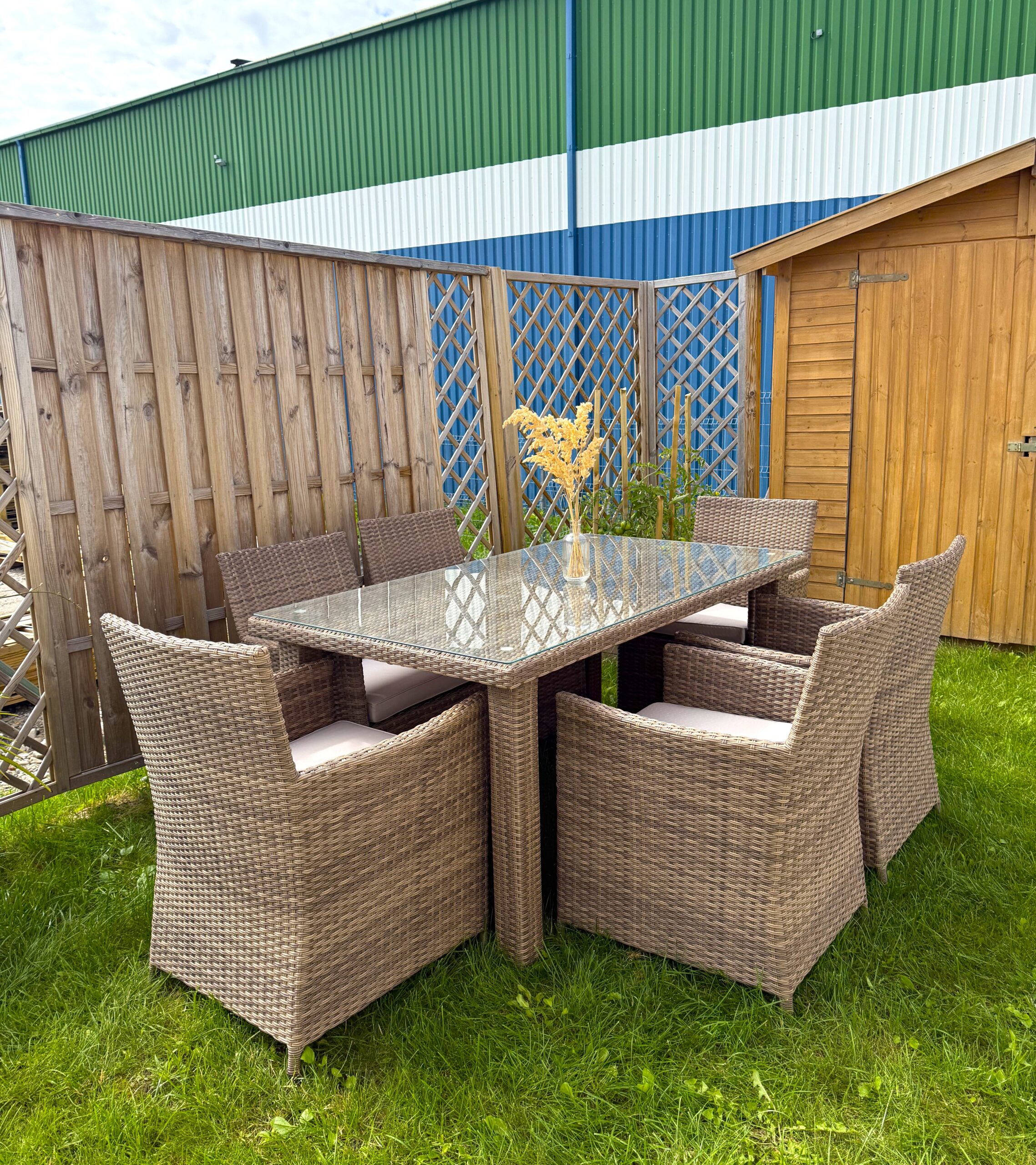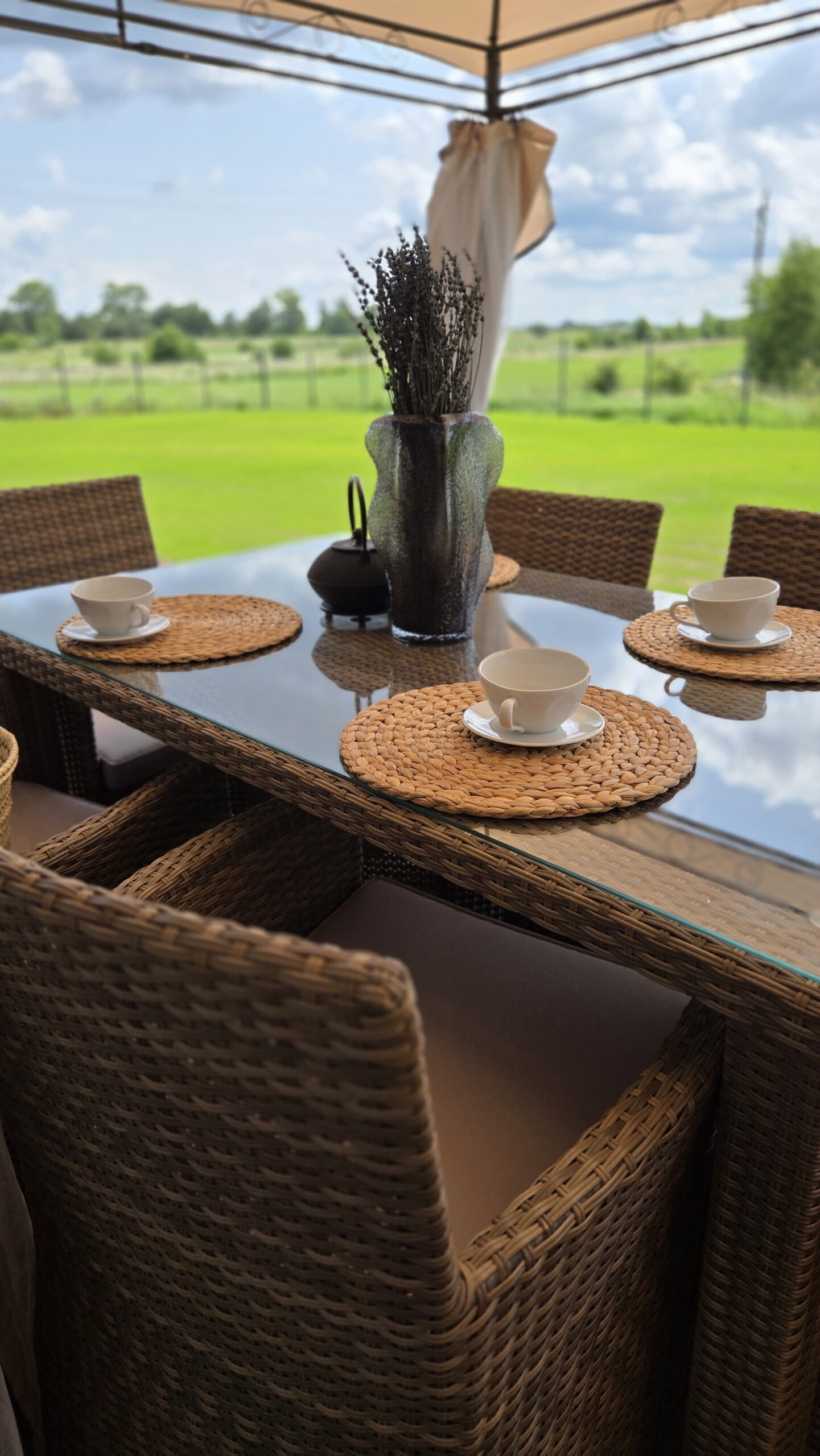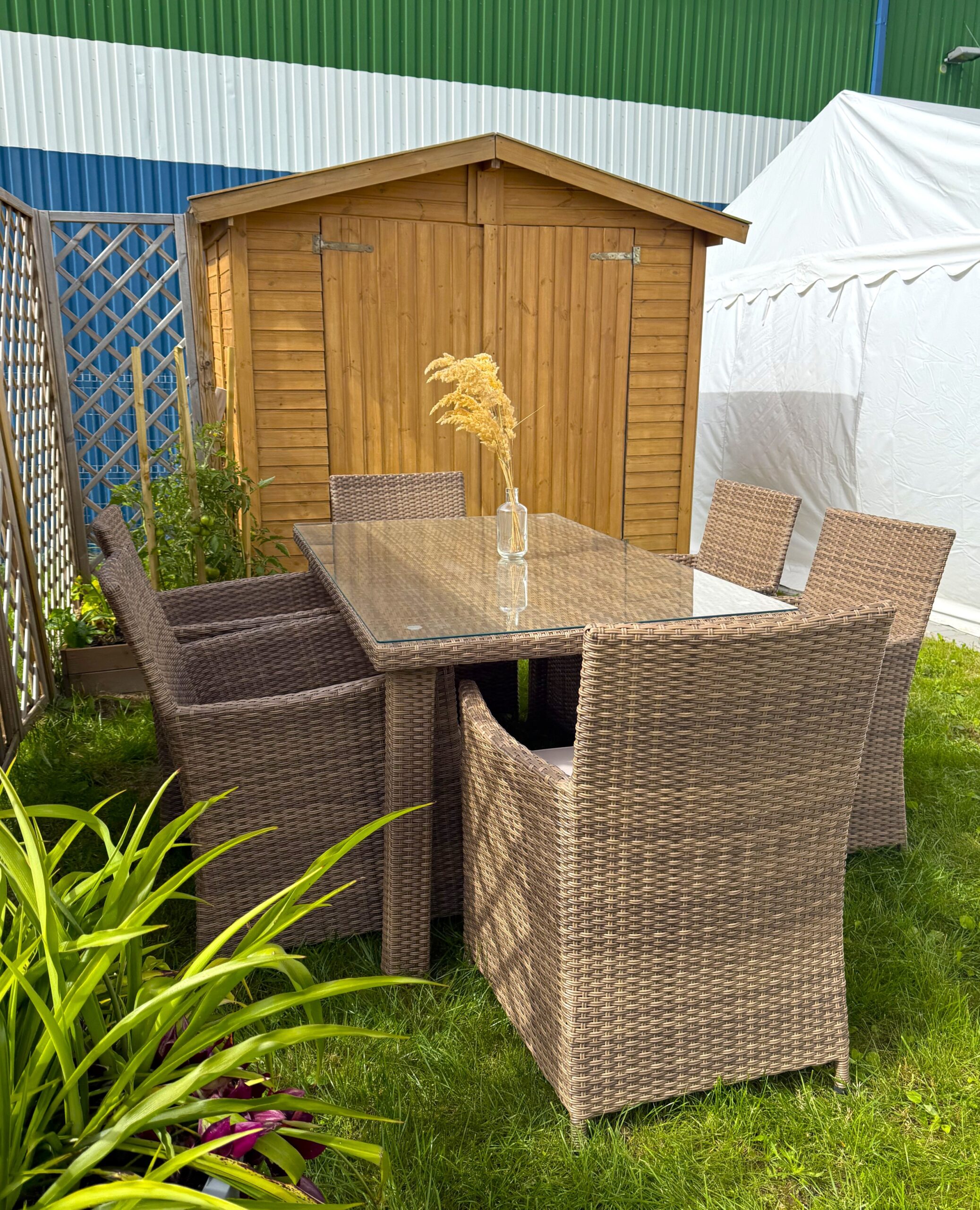 Septynių dalių lauko baldų komplektas yra puikus pasirinkimas ieškantiems patogumo, funkcionalumo ir šiuolaikiško dizaino. Sukurtas iš aukštos kokybės medžiagų, komplektas užtikrina ilgaamžiškumą ir nepriekaištingą išvaizdą. Jis puikiai tiks terasoms, sodams ar pavėsinėms, suteikdamas erdvę atsipalaidavimui ir bendravimui. Šis lauko baldų komplektas puikiai tiks tiek jaukiems šeimos vakarams, tiek didesniems susibūrimams su draugais.