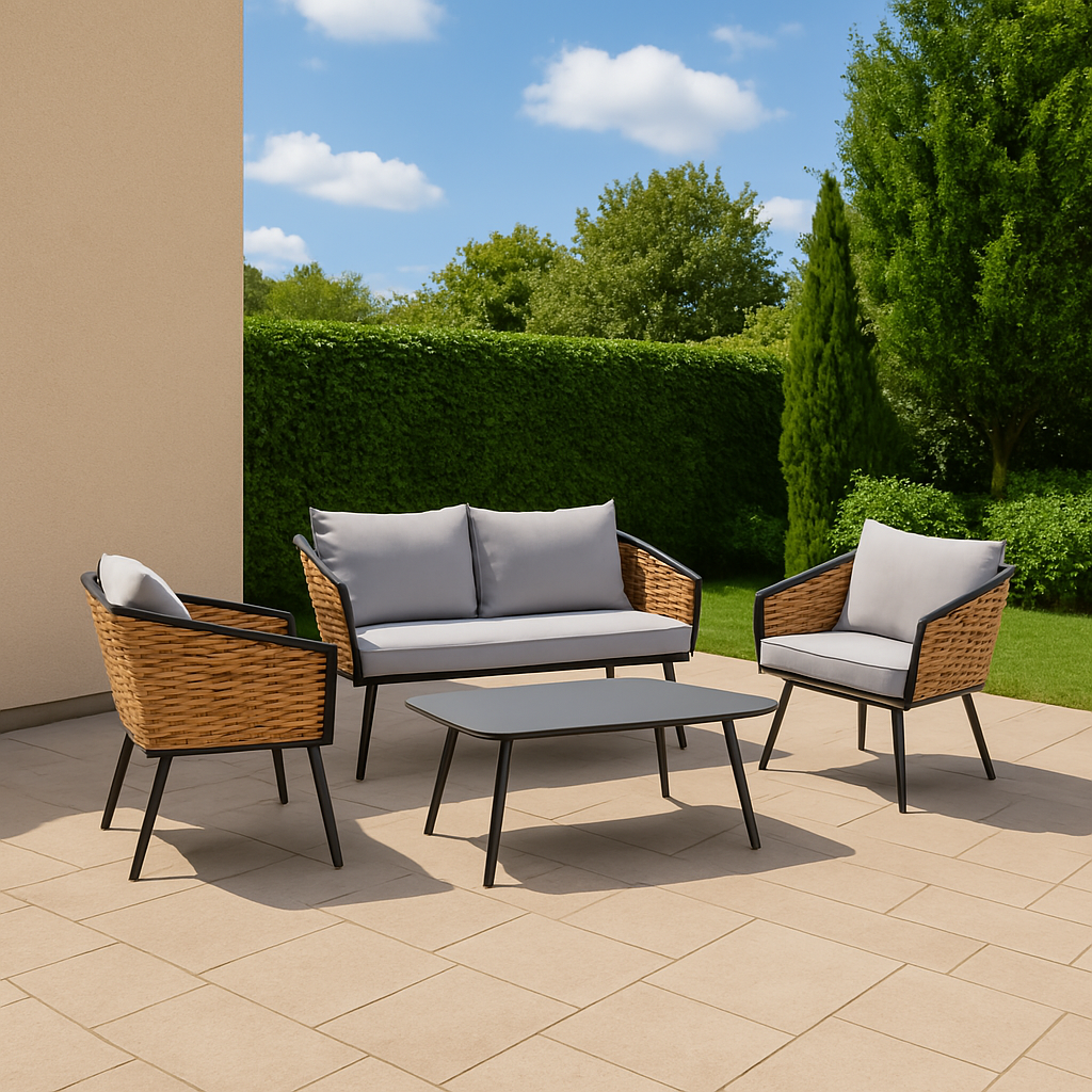 Šis lauko baldų komplektas suteiks jūsų erdvei ne tik jaukumo, bet ir elegancijos. Pasirūpinkite savo lauko erdve ir mėgaukitės komfortu ir stiliumi kiekvieną dieną!