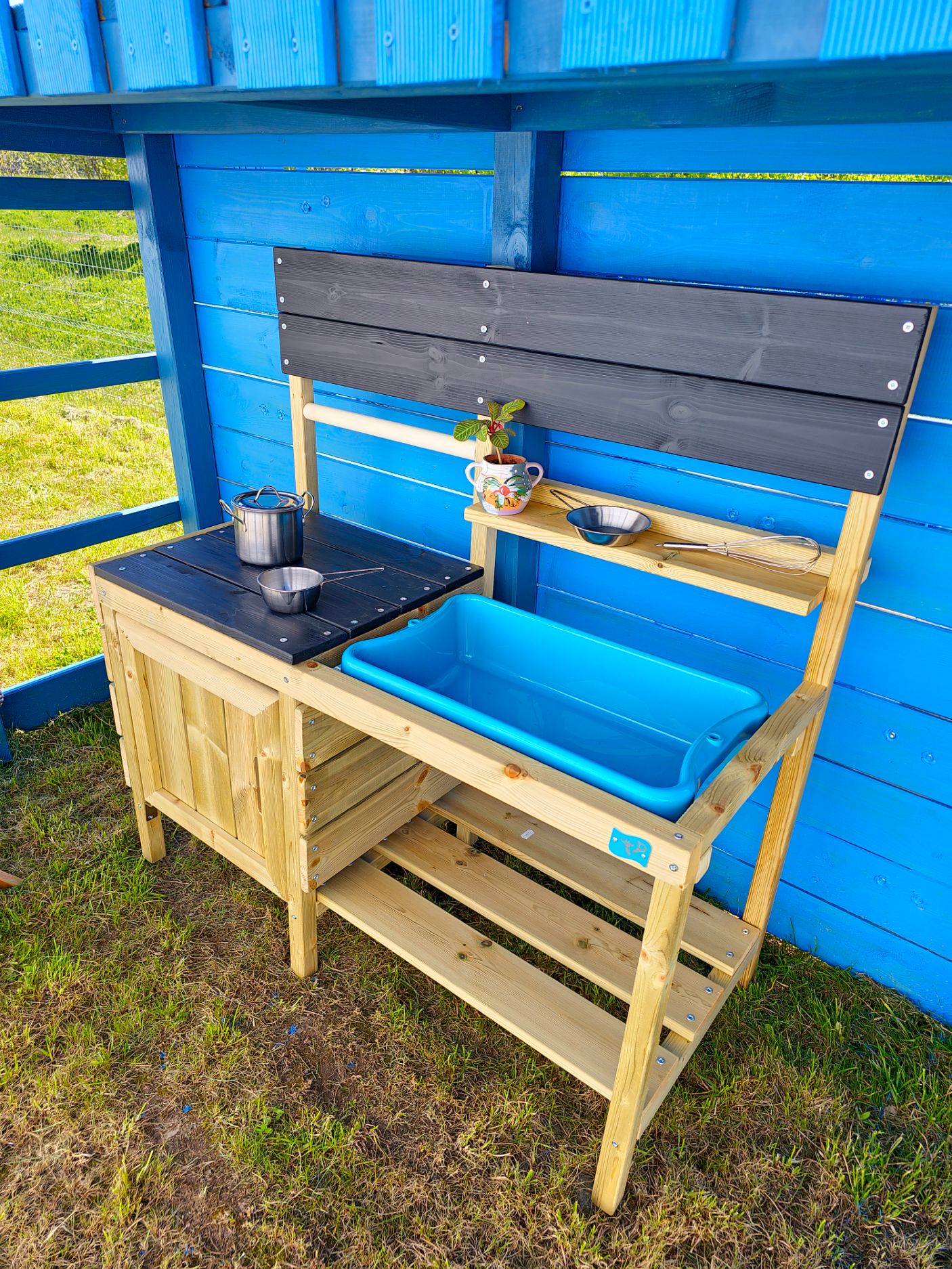 Medinė lauko virtuvėlė – itin smagi pramoga mažiesiems kulinarams! Vaikiška lauko virtuvėlė “Restoranas” leis pasijusti tarsi būtumėte tikroje virtuvėje. Tai lauko žaidimų virtuvė, kurioje smėlis ir vanduo yra pagrindiniai patiekalų gaminimo ingredientai. Tai puikus žaislas, skirtas smulkiosios ir stambiosios motorikos vystymui bei vaidmenų žaidimams.