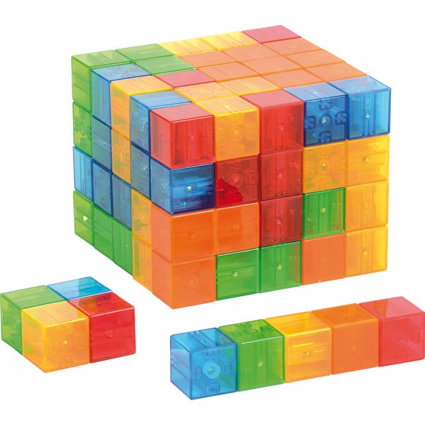 Šis rinkinys – puikus pasirinkimas vaikams kurie mėgsta statyti, kurti ir tyrinėti. Rinkinyje yra 100 skaidrių, spalvingų kubelių su įmontuotais magnetais – jie susijungia visomis šešiomis pusėmis, leidžiant formuoti stabilias konstrukcijas, eksperimentuoti su šviesa (pvz., LED švieslentė), atrasti geometrines formas ir lavinti kūrybiškumą. Kūrybinis, magnetinis konstruktorius vaikams nuo 3 m., skatina logiką, konstrukciją, dizainą. Kubelių matmenys 2,3 cm.