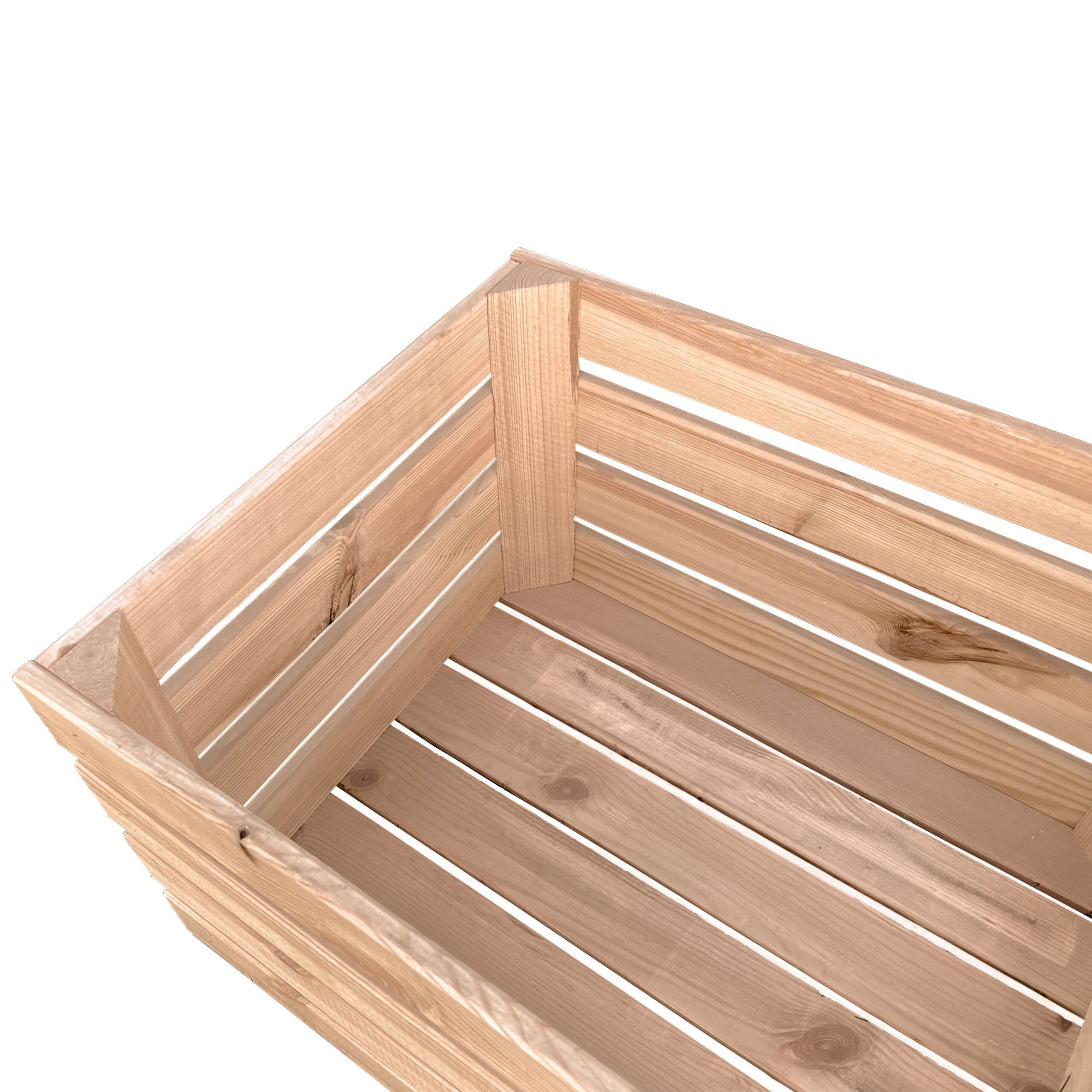 Tvirta medinė dėžė puikiai tiks daržovėms ar vaisiams laikyti bei susidėti kitus namų apyvokos daiktus. Iš patvarios medienos pagaminta medinė dėžutė puikiai pagyvins jūsų namų ar sodo interjerą. Daiktadėžė pagaminta iš sausos pušies medienos, kurią galite dažyti, apdoroti alyva ar kitaip dekoruoti.