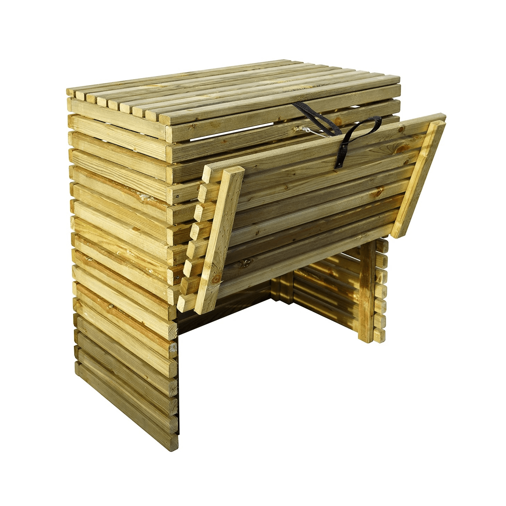 Medinė kompostavimo dėžė turi dangtį, kurį pakėlus nesudėtingai sudėsite atliekas. Kadangi tarp lentelių yra tarpai, kompostas bus laikomas ne tik tvarkingai, bet jame bus užtikrinta oro cirkuliacija, reikalinga procesui, paverčiančiam organines atliekas vertingų maistinių medžiagų turinčiu kompostu. O pro atvirą dugną į kompostą patenka naudingų dirvožemio mikrobų ir vabzdžių. Visiškai susiformavęs kompostas nusifiltruoja į dėžės dugną ir yra lengvai išimamas nukėlus praplatėjimo dangtį. Optimalaus dydžio dėžė talpina 570 l, todėl puikiai tinkamas naudoti kiemuose ar soduose.