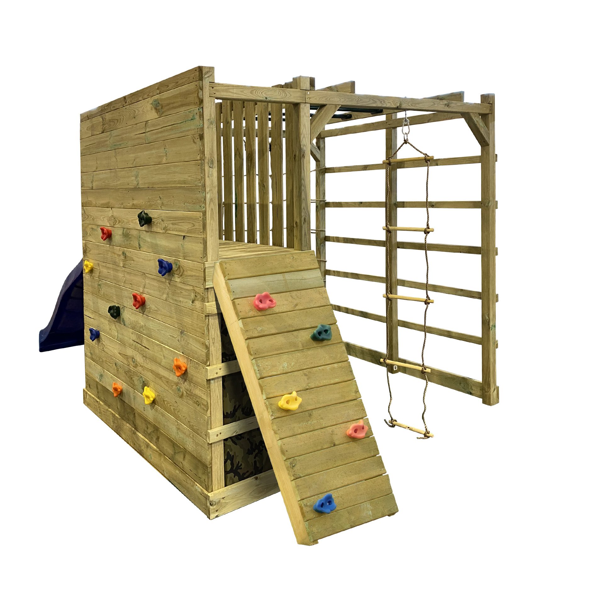 Ši laipiojimo sienelė su 5 laipiojimo kybiais yra puikus sprendimas norint sukurti įdomią, aktyvią ir saugią žaidimų erdvę vaikams. Laipiojimas yra ne tik linksma pramoga, bet ir puikus būdas stiprinti raumenis, lavinti pusiausvyrą, koordinaciją bei judesių kontrolę. Be to, vaikai mokosi iššūkių įveikimo ir ugdo pasitikėjimą savimi! Sienelę lengva pritaikyti tiek prie medinių žaidimų namelių, tiek prie žaidimų aikštelių, todėl ji tampa universaliu kiemo priedu, kuris skatins vaikus daugiau judėti gryname ore.