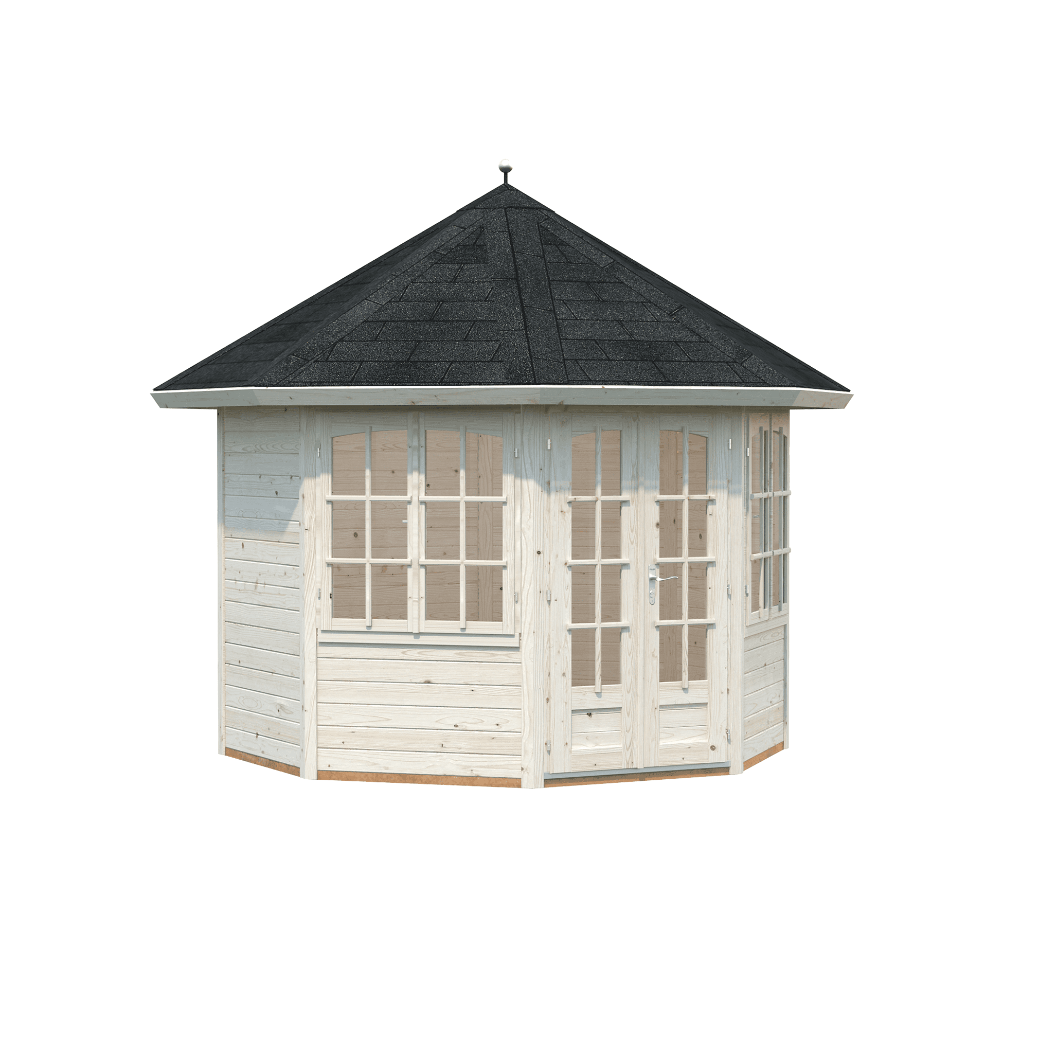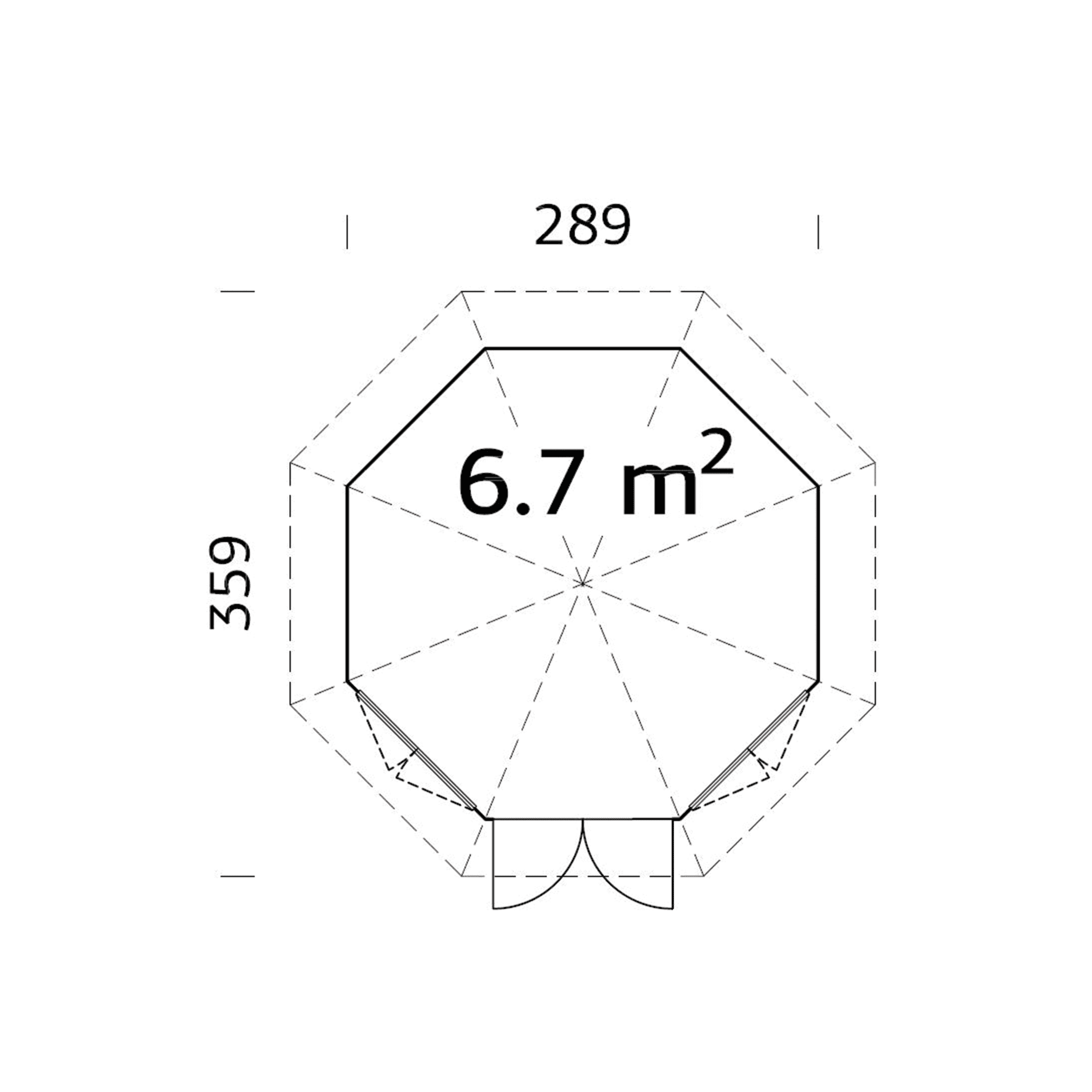 Išskirtinio dizaino, aštuonkampio formos medinė sodo pavėsinė „Veronika 2“ 6,7 m2 – puikus pasirinkimas ieškantiems išskirtinio dizaino poilsio erdvės. Pavėsinėje esančios didelės dvigubos durys, leis mėgautis sodo ir gamtos grožiu bet kuriuo metų laiku. Jaukiai įkurta pavėsinė neabejotinai taps lankomiausia visos šeimos poilsio vieta. Sienų konstrukcija pagaminta iš paruoštų surinkimui elementų, tad greitai ir lengvai surinksite statinį savo kieme.