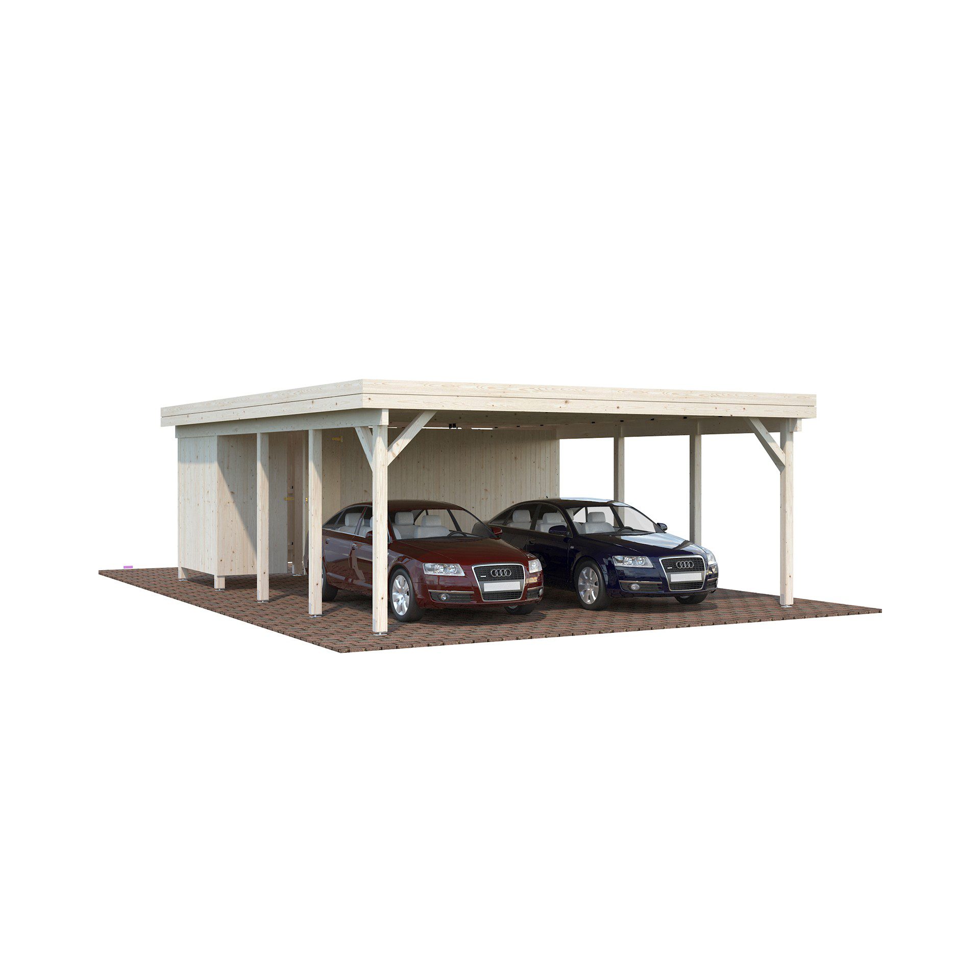 Medinė dvivietė stoginė automobiliams „Karolis“ 29,8 m2, puikus pasirinkimas norint apsaugoti automobilius nuo saulės, sniego ar lietaus. Stoginės gale esantis 10,8 m2 sandėliukas puikiai tiks laikyti automobilio priežiūros reikmenis ar kitus sodo įrankius. Žiemą išvengsite langų valymo nuo sniego, pavasarį ar rudenį ledų krušos, o vasaromis nulaužto medžio šakos, ar perkaitimo automobilyje, nes stoginė suteiks didelį pavėsį.