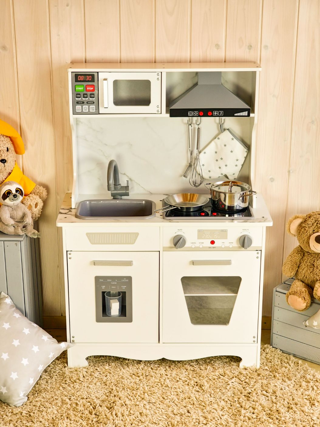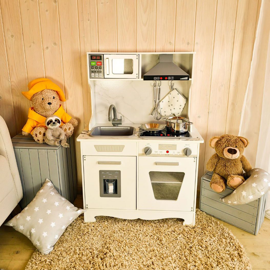 Medinė virtuvėlė pristatoma nesurinkta, bet neabejojame, jog surinksite itin lengvai ir greitai! Baterijos nepridedamos.