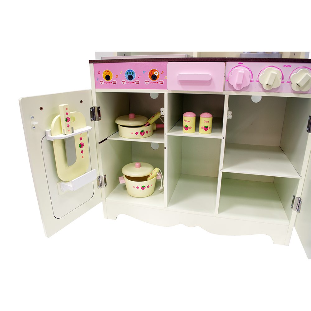 Tikra mažojo virtuvės šefo svajonė! Žaisminga bei daugiafunkcinė virtuvėlė, kurioje originalaus ir tikroviško dizaino technika: kriauklė, viryklė, orkaitė, indaplovė, mikrobangų krosnelė. Šiek tiek vaikiškos fantazijos ir jūsų pageidaujamas maistas bus pagamintas!
