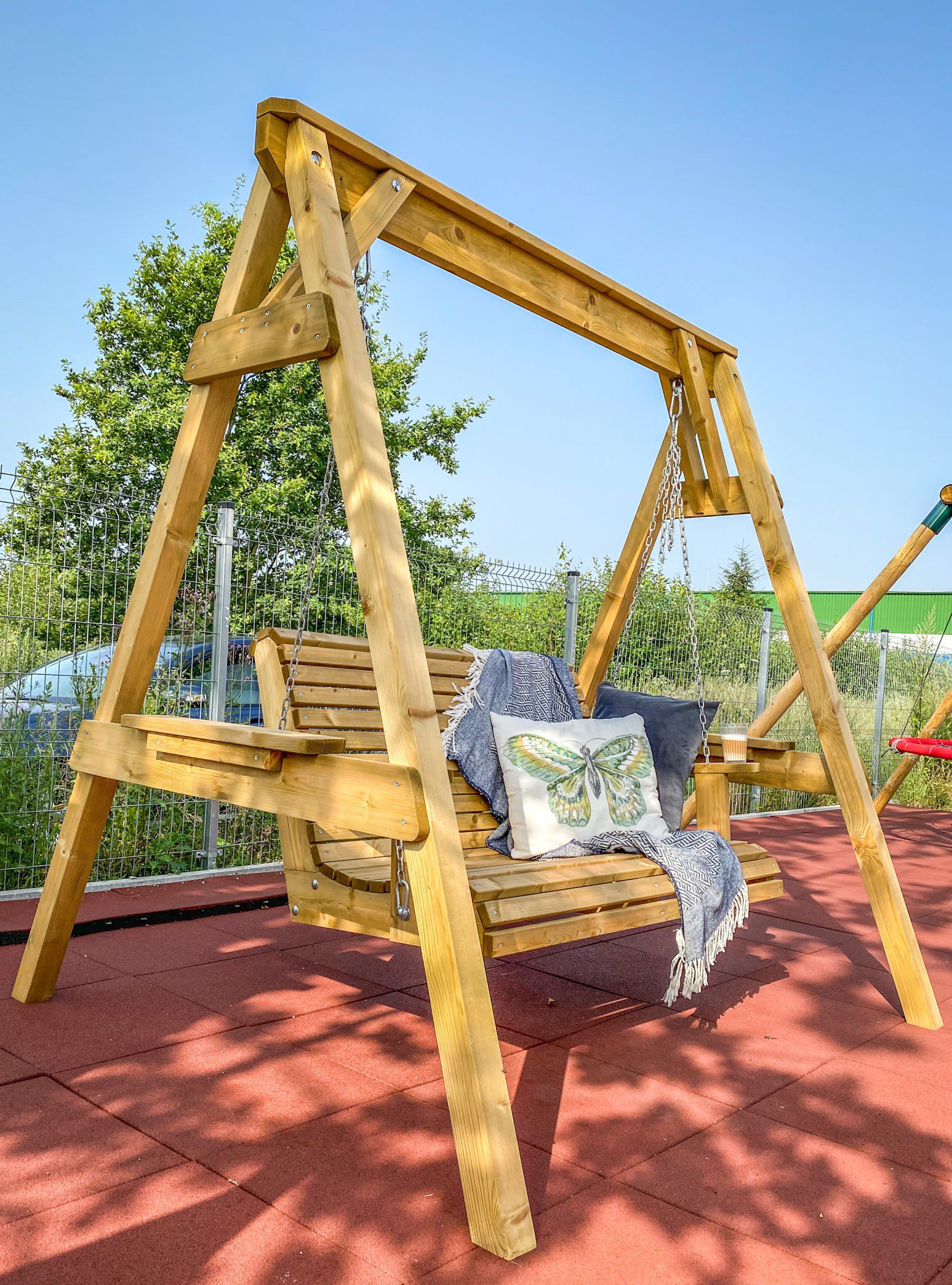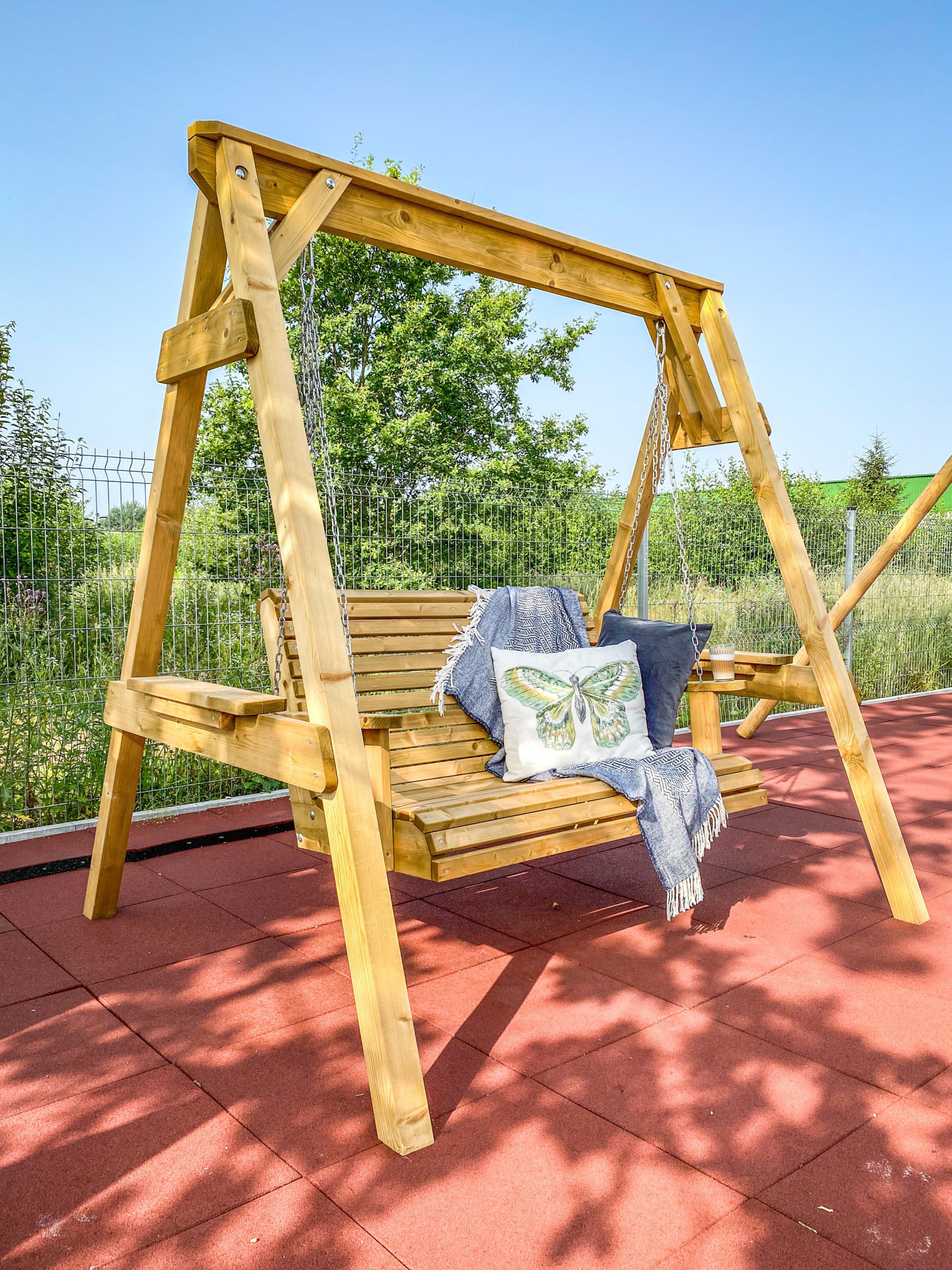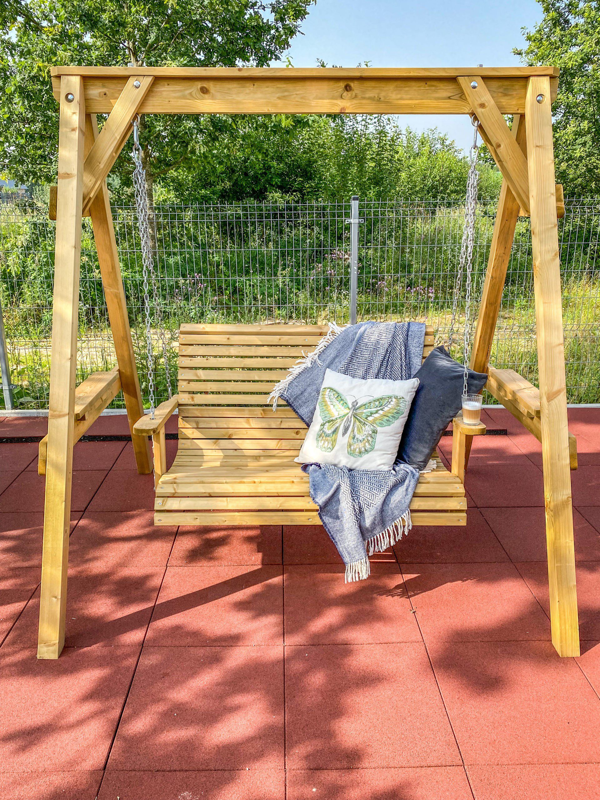 Medinės sūpynės su suoliuku „VERSMĖ“ – ne tik pasirūpins komfortiško poilsio akimirkomis bet taip pat taps nuostabiu akcentu ir tikra kiemo puošmena. Patogi ir patikima konstrukcija puikiai pritaikyta suptis dviems asmenims.