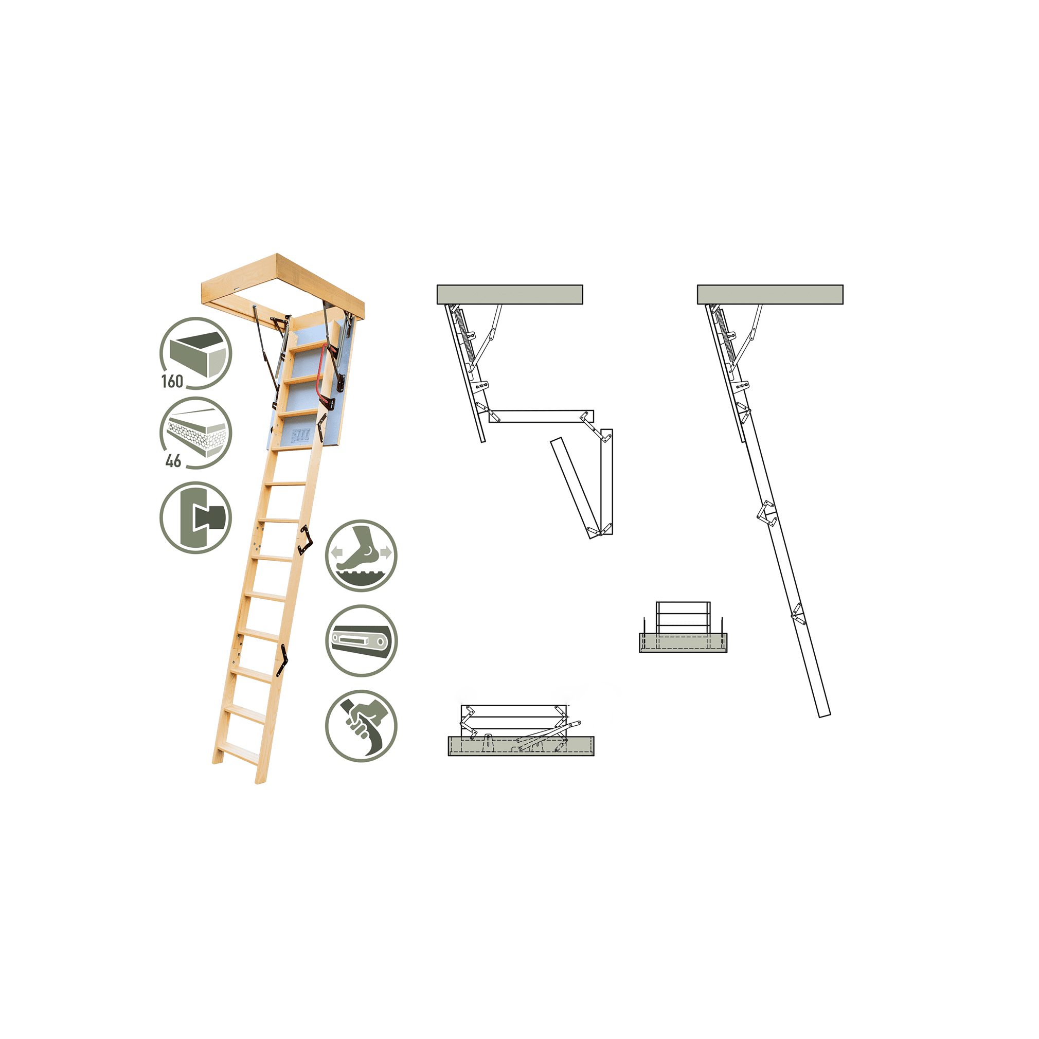 Mediniai palėpės laiptai „Extra” 100 x 80 cm