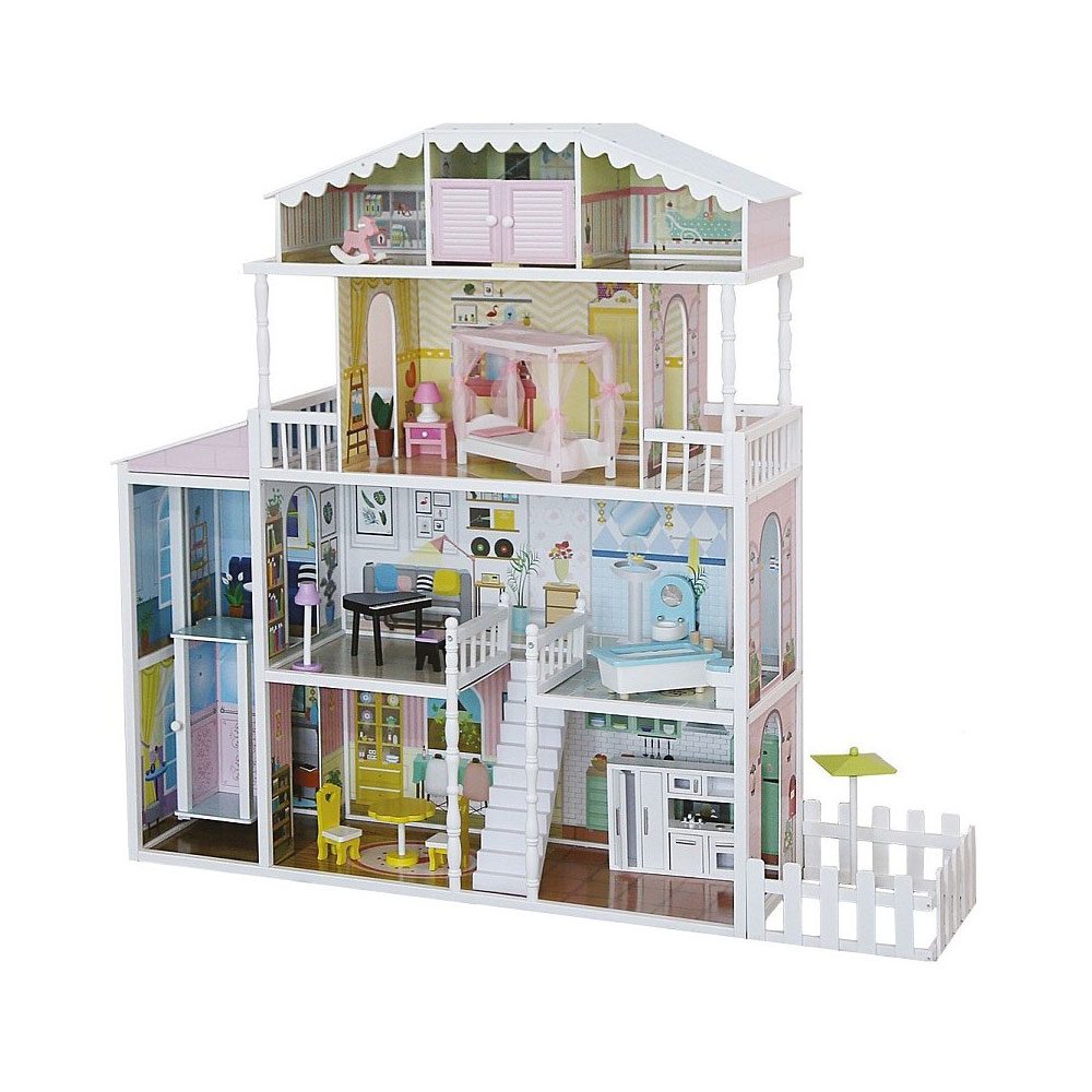 Medinis lėlių namelis VASARNAMIS – erdvi žaidimų vieta, kurioje mažieji suras daug skirtingų erdvių patiems įvairiausiems scenarijams! Lėlių nameliai yra ne tik įdomus, bet ir puikus edukacinis žaidimas vaikams! Atskirose namelio erdvėse vaikai galės sukurti įvairius žaidimų scenarijus, išskirtines situacijas, kurios neabejotinai lavins fantaziją. Visos detalės pagamintos iš medžio bei nudažytos ekologiškais dažais. Net 4 aukštų medinis lėlių namelis yra 133 cm aukščio, turi ne tik laiptus bet ir liftą! Komplekte surasite 17 vnt baldų rinkinį. Medinis lėlių namelis pristatomas nesurinktas.