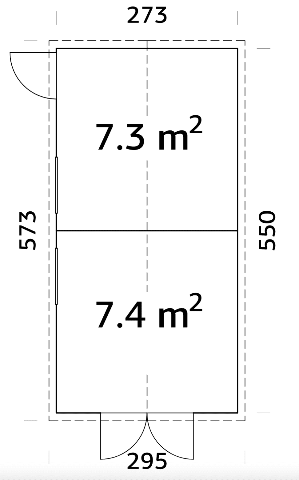 Itin talpus, dviejų patalpų sandėliukas „Vilkas“ 14,7m2 puikiai tinka laikyti didesnę sodo įrangą, įrankius ar kitus daiktus. Viena sandėliuko patalpa yra 7,4m2, kurioje puikiai talpinsite didesnių gabaritų daiktus ar įrangą. Bei 7,3m2 dydžio patalpa smulkesniems sodo ar daržo daiktams ar malkoms laikyti.