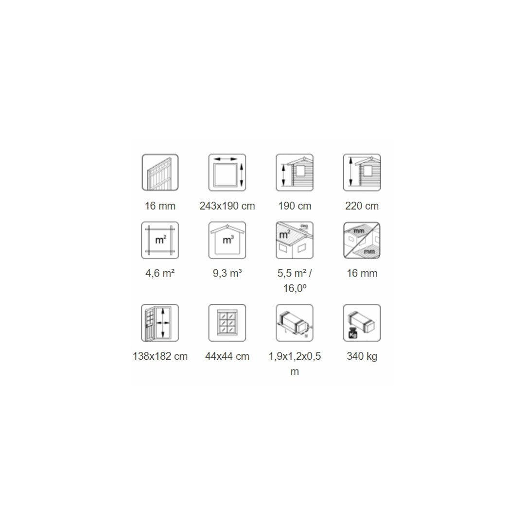 • Lengvai surenkamos modulinės konstrukcijos 16 mm sienų elementai, 16 mm grindlentės bei 16 mm stogo lentos.