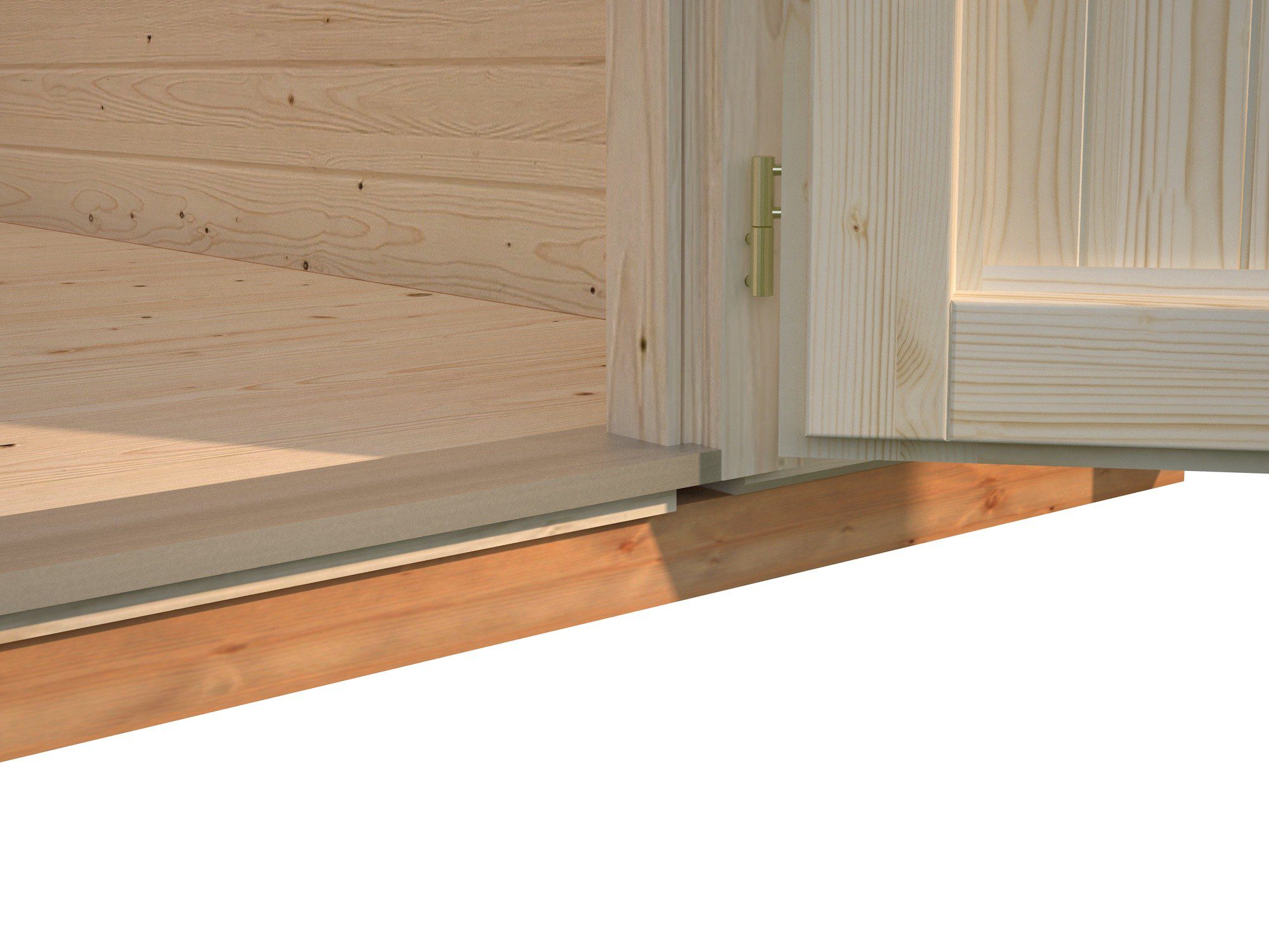 GRINDYS. Grindų komplektą sudaro 19 mm neimpregnuotos spygliuočių medienos grindlentės ir 80×60 mm giluminiu būdu impregnuotos medienos pamato sijos. Grindlentės abejose pusėse turi išdrožas bei įlaidas (špuntus), kurių pagalba grindis surinksite lengvai ir greitai nepaliekant bereikalingų tarpų. Esant poreikiui, grindis/pamatus galite apšiltinti izoliacine medžiaga, užpildant ertmę esančią tarp grindlenčių ir sijų (po grindų lentomis). Termo izoliacinė medžiaga į komplektą neįeina.