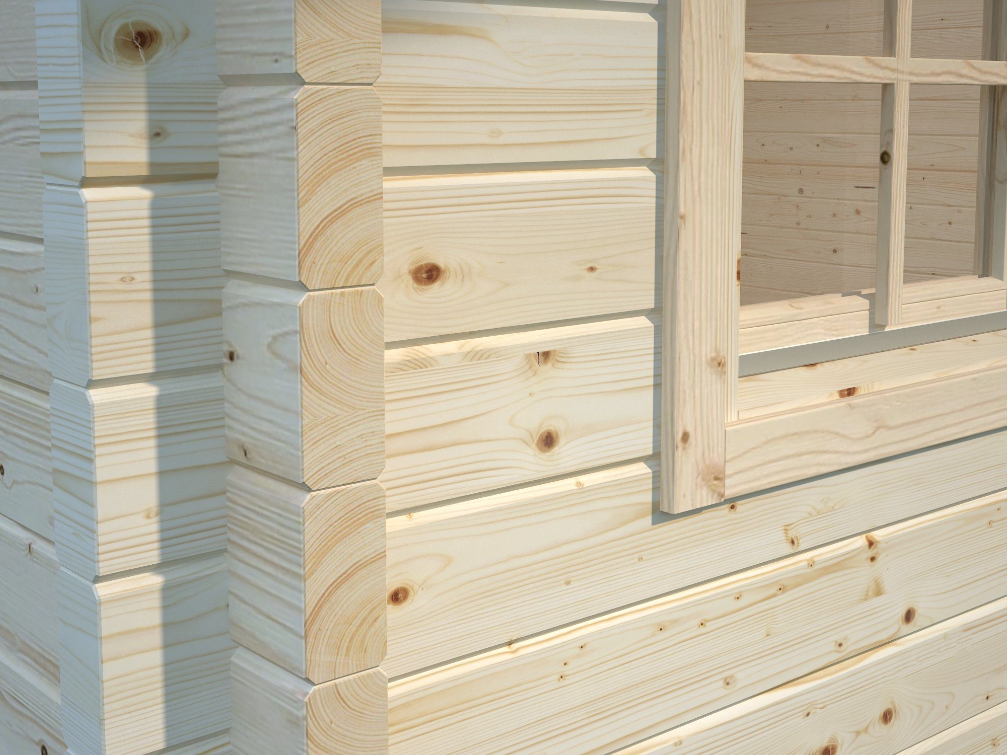 • Šiaurinių spygliuočių medienos 70 mm sienojai, 19 mm grindlentės bei 19 mm stogo lentos.