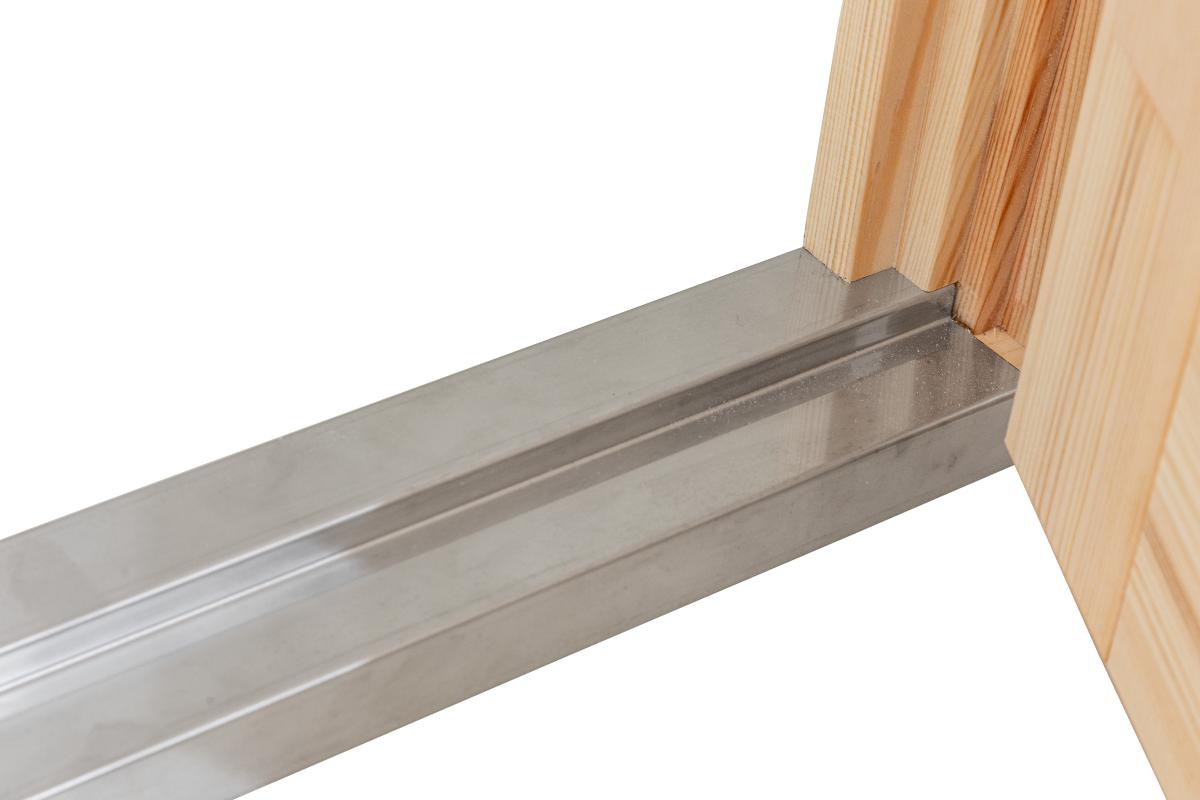 - Laminuoto medžio durų rėmas, plienu dengtas slenkstis.