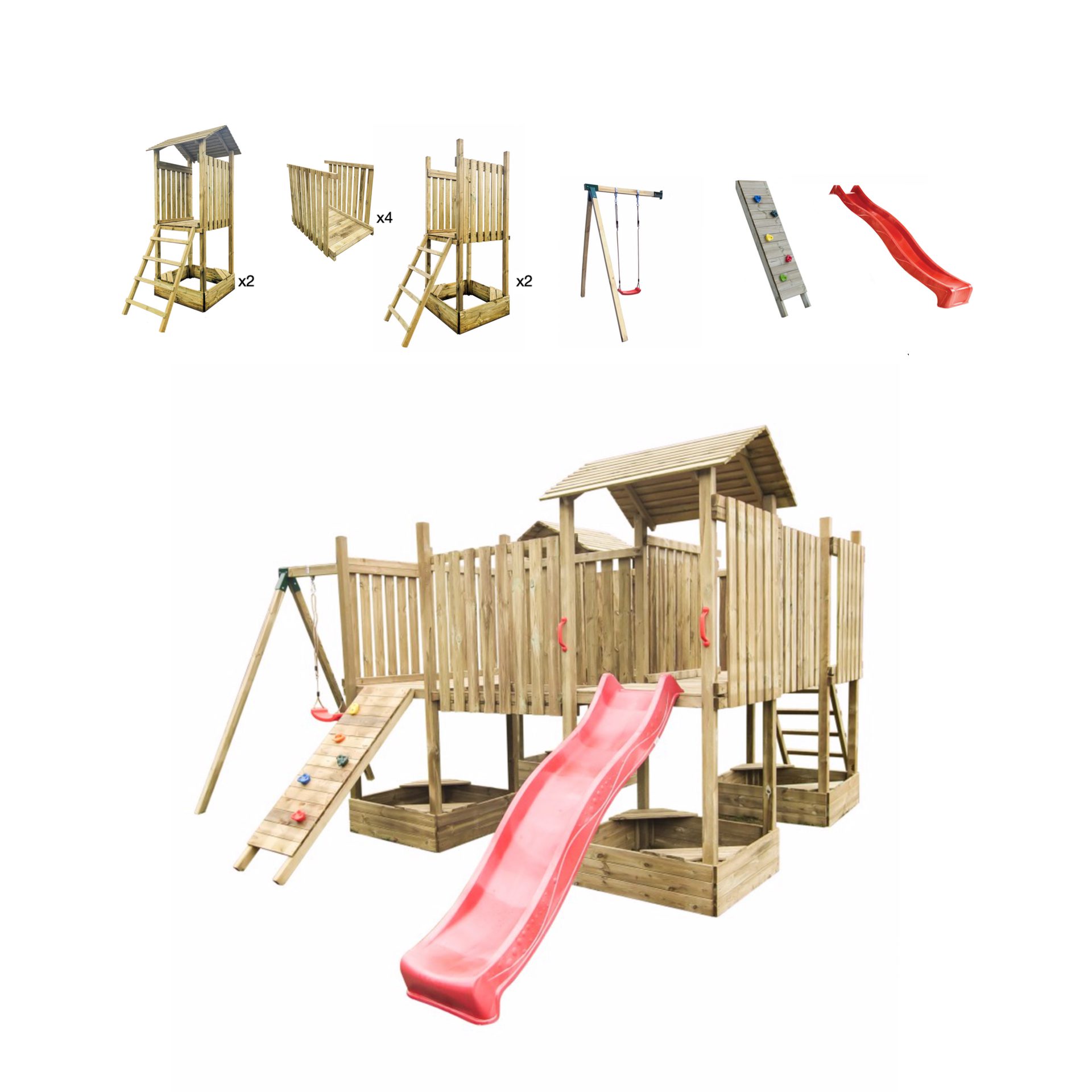 DĖMESIO! Žaidimų aikštelė pagaminta iš natūralios, neapdorotos žaliavinės medienos ir skirta naudojimui lauke. Šio tipo medienai būdingi nelygumai, kartais įtrūkimai, gali pasitaikyti šakų ar būti nedidelis šiūrkštumas, kuris nesudėtingai pašalinamas šlifavimo (švitriniu) popieriumi. Mediena, iš kurios gaminamos žaidimų aikštelės, yra atrinkta iš sertifikuotų tiekėjų, jai taikomas FSC sertifikavimas.