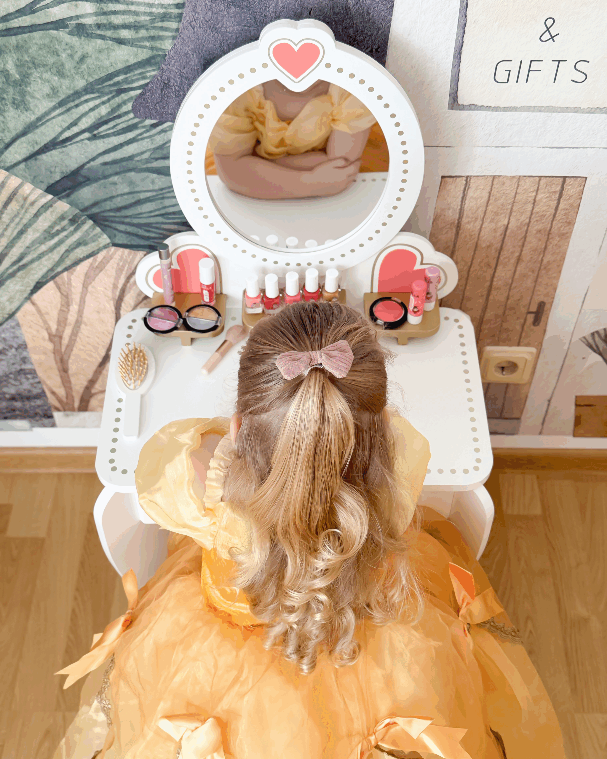 4iQ › Parduotuvė › Žaislai vaikams › Medinis vaikiškas kosmetinis staliukas „Meilė“