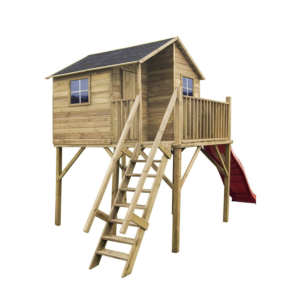 Vaikų žaidimų namelis “Didysis Gandriukas” su dvigubomis sūpynėmis, pasirūpins kūrybingu ir lavinančiu vaikų ugdymu bei laisvalaikiu. Namelis turi gerokai paaukštintą platformą, kuri yra pakilusi net 150 cm nuo žemės bei turi patogų turėklą, kad užlipti į savo tvirtovę būtų saugu. Juk kiekvienas jaunasis detektyvas, mokslininkas ar atradėjas norėtų turėti savo privačią žaidimų erdvę! Prie namelio papildomai galima tvirtinti 290 cm ilgio čiuožyklą.