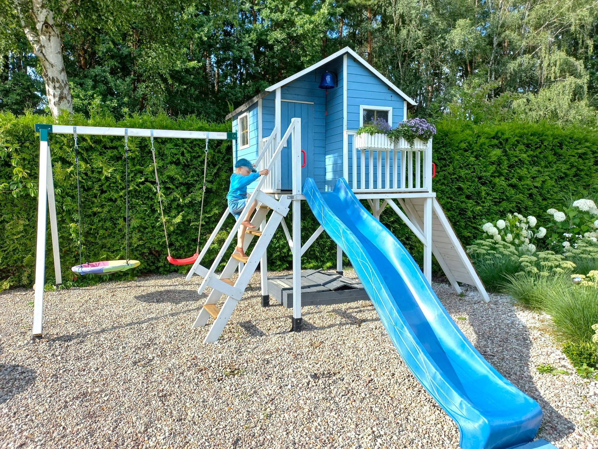 Namelis turi TÜV sertifikatą, skirtas įrengti prie namų esančiose žaidimų aikštelėse, atitinka standartą EN 71 |