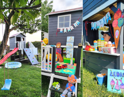 - Komplektacijoje nėra čiuožyklų, nuotraukose parodyta kaip gali atrodyti namelis su čiuožyklomis. Šiam nameliui gali būti papildomai tvirtinama 290 cm ilgio čiuožykla.