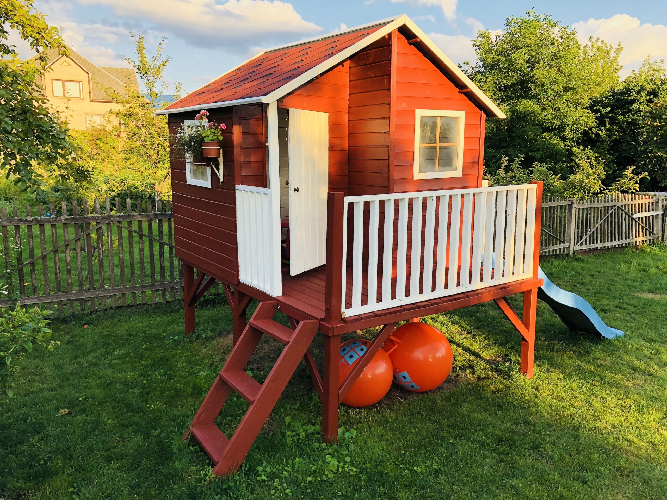 Medinį vaikų žaidimų namelį surinksite itin lengvai ir greitai – tai bus smagus užsiėmimas visai šeimai!