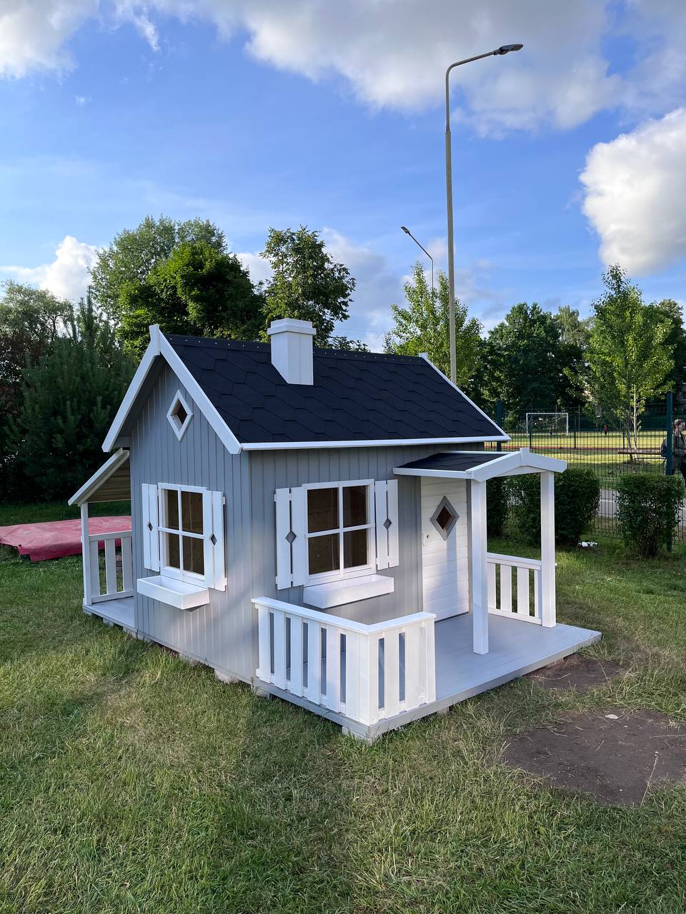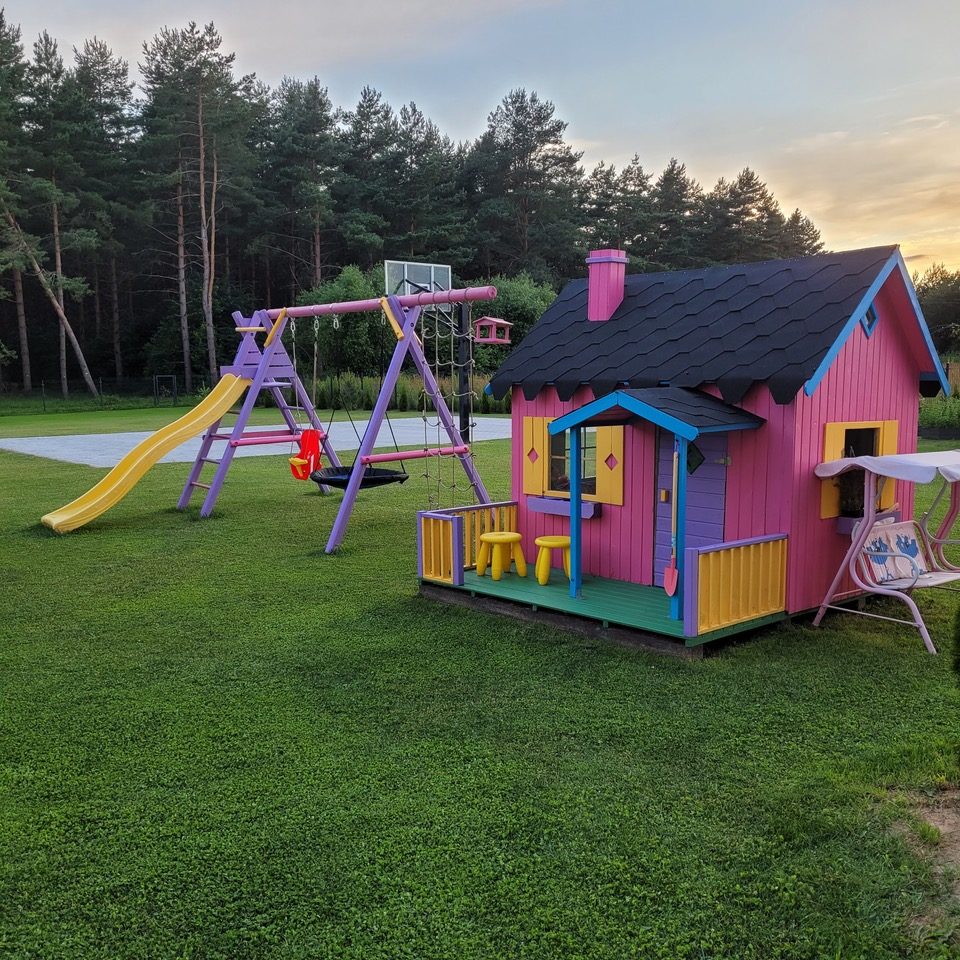 Namelis turi TÜV sertifikatą, skirtas įrengti prie namų esančiose žaidimų aikštelėse, atitinka standartą EN 71 |